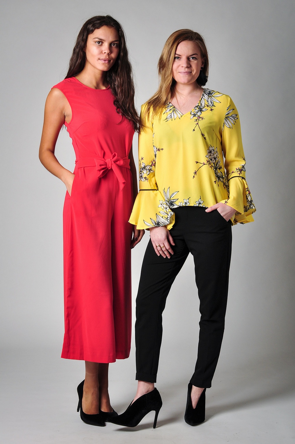 Ni ser blusen i härligt blå och gul färg med snygg volangärm! Vi får även en jumpsuit från Vila som Jessica har norpat och Amanda är sugen på!