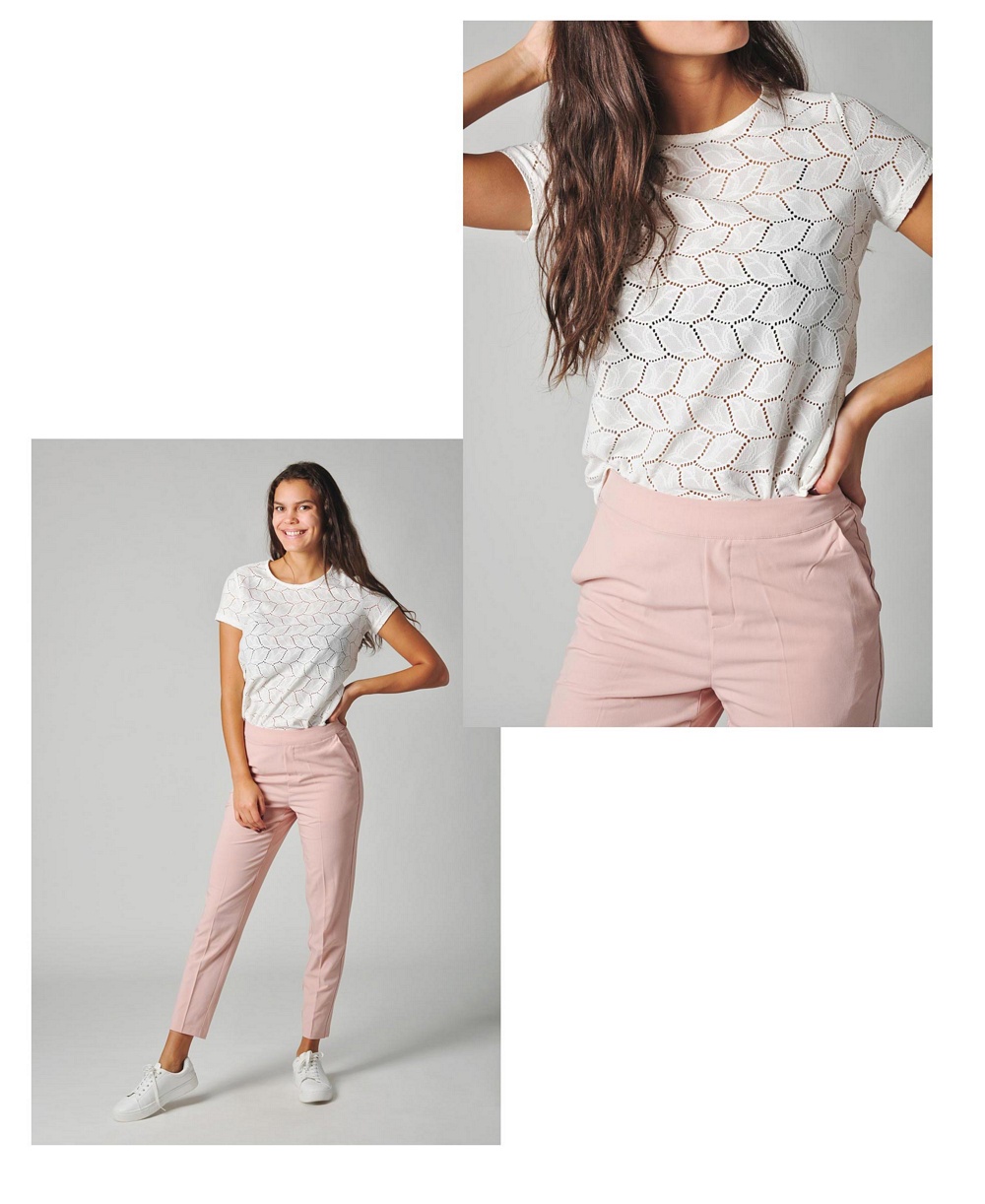 De rosa byxorna jag har är fantastiska Objcecilie som många av oss har i de andra färgerna! Så fint med en rosa byxa. Det blir verkligen fräscht med rosa också. Den söta toppen kommer även i rosa!
