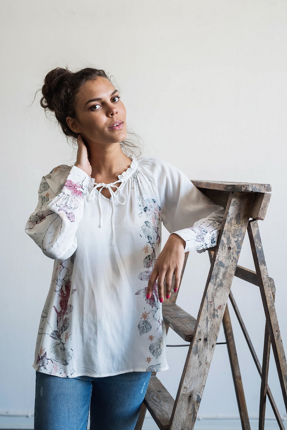 Blusen från Soya i romantisk och enkel modell är perfekt att ha till allt från jeans till kjol! Den finns även i en fin ljusblå färg. Superskön vid passform som inte sitter åt någonstans! Den här rekommenderar vi verkligen.