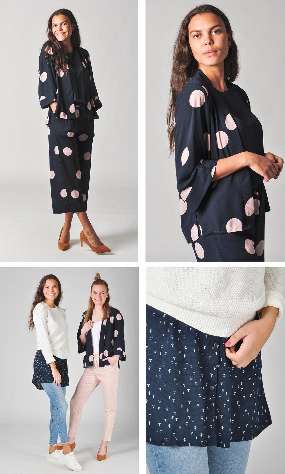 Så mycket fint som kommer idag! Amanda har på sig en superfin klänning i mjuk viskoskvalité från Jacqueline de Yong som man även kan ha som tunika! Den kommer i det fina mönstret med ankare, marin och korall! Den här är ett stort tips från oss. Till det har hon Vilas stickade tröja "