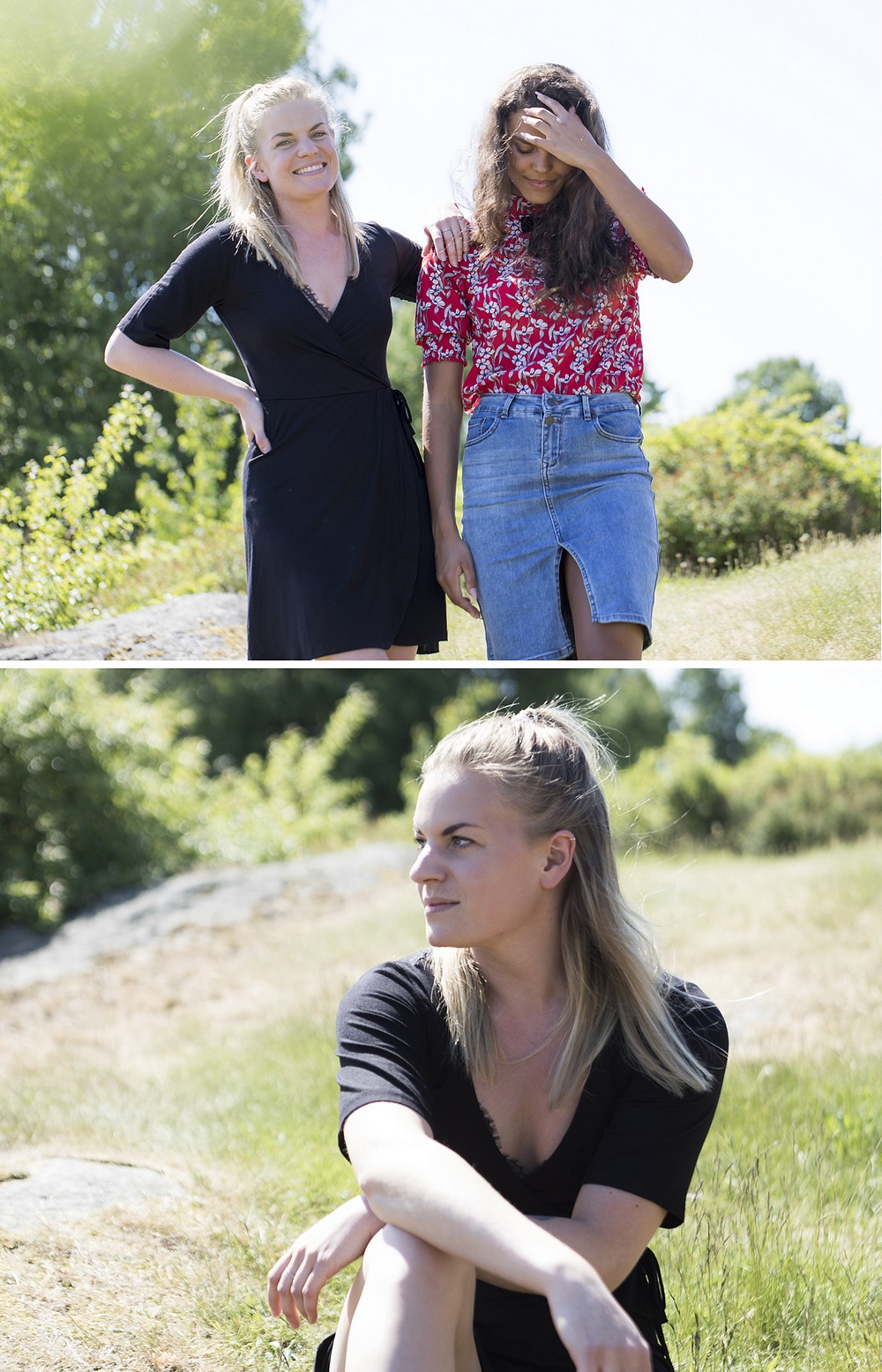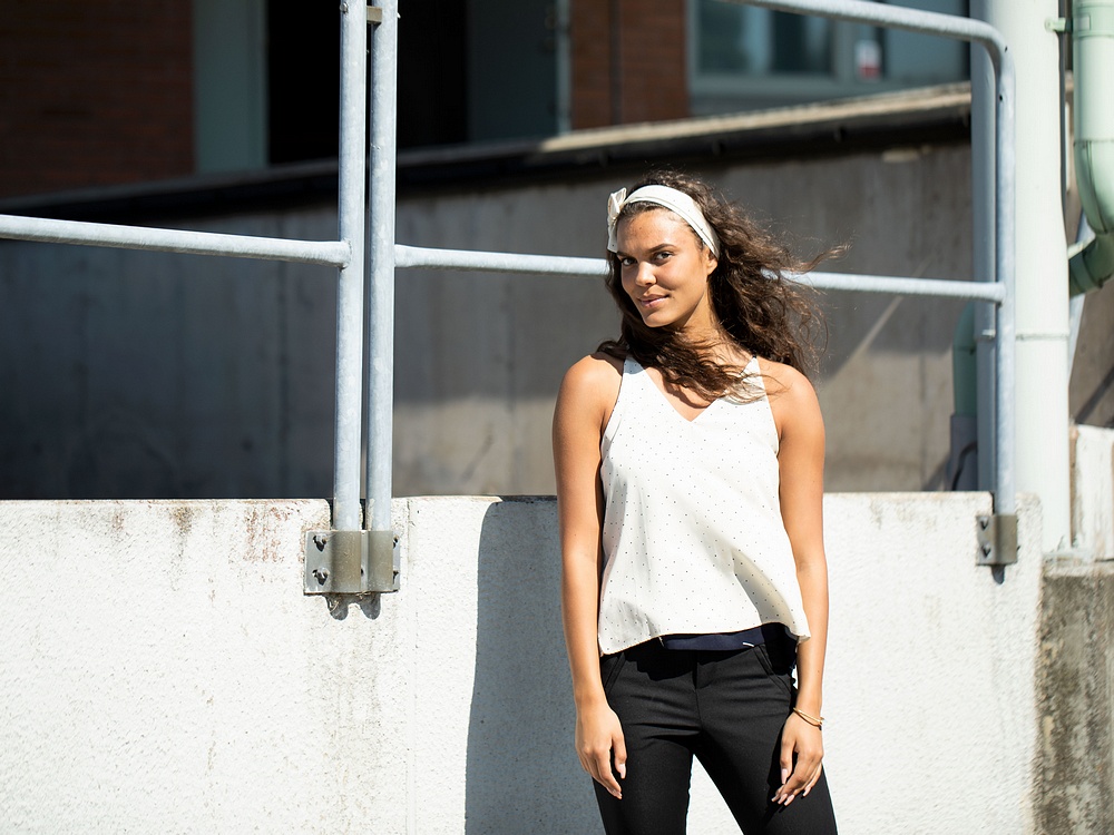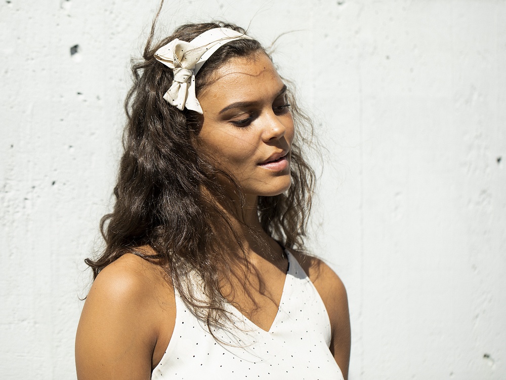 Linnet kan man även vända så man får prickigt utåt. Ni ser det på både Amanda och Jessica här! Amanda har även tagit bandet till shortsen som hårband! Så kul när man kan fånga upp mönster och färger till accessoarer och smycken ;)