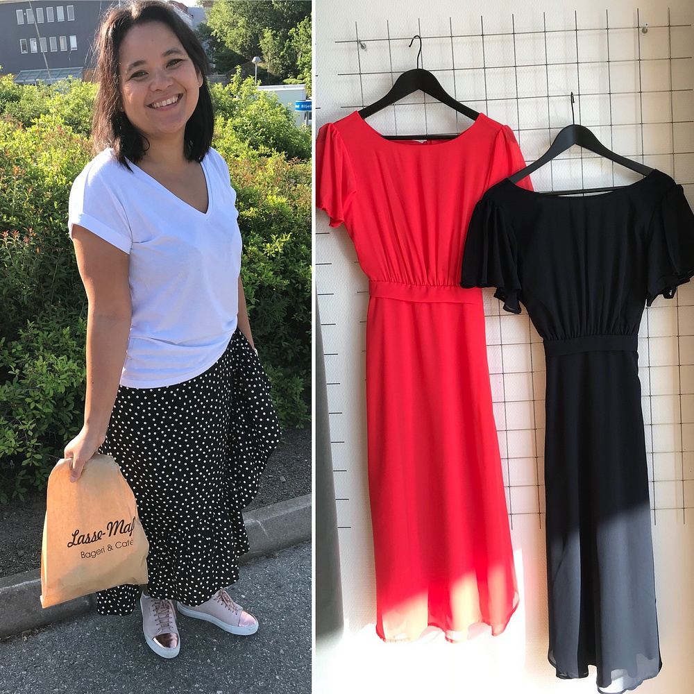 Jessicas klänning ger en superfin siluett och sitter riktigt skönt. Den passar till både fest och vardags!