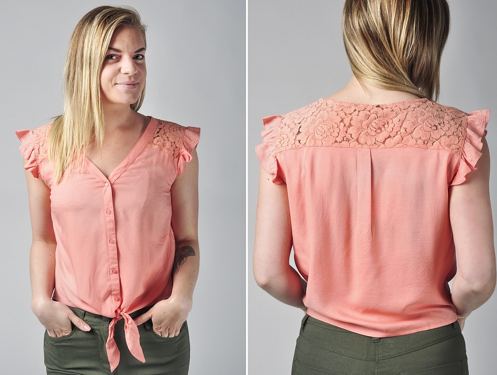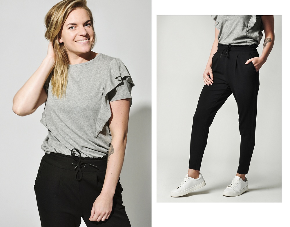 Ni ser Jessica i gårdagens fina byxor som är helt otroligt mjuka och stretchiga.. Knytblusen hon har till är så fin med spetsen och kommer i flera färger.