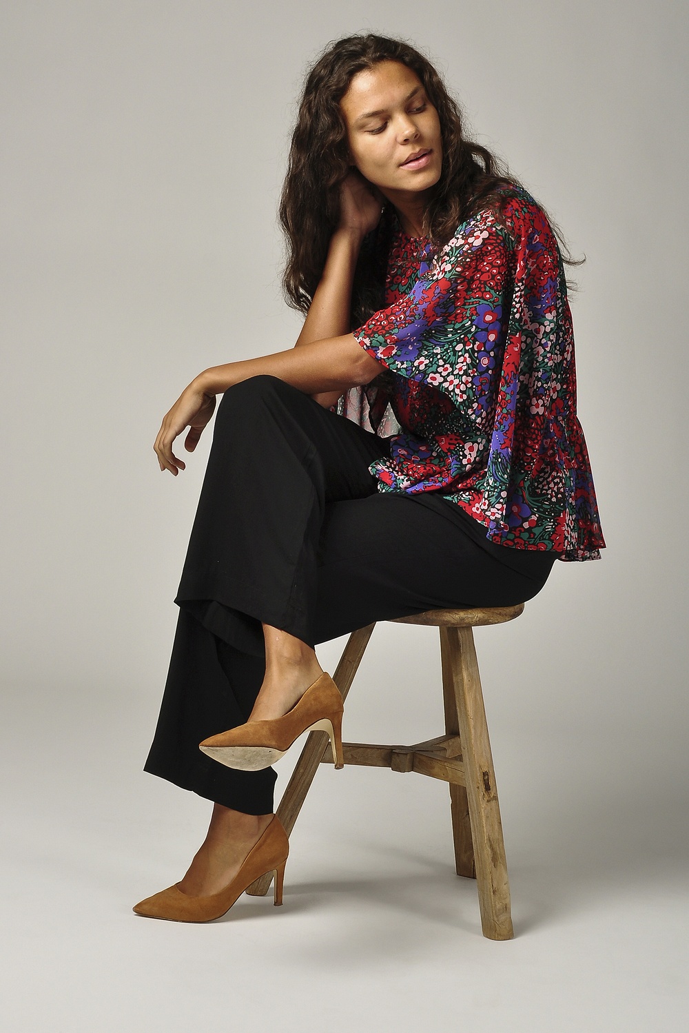 Amanda har matchat de suuupersköna byxorna från Vero Moda i vid modell med dagens blus i snyggt print.