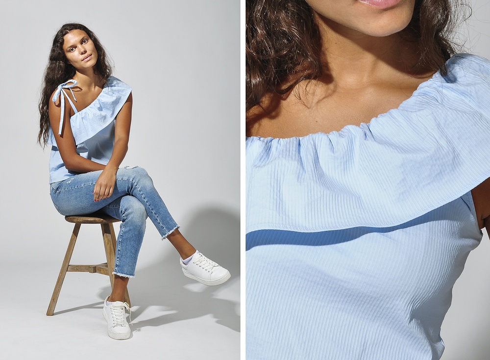 Håll i hatten.. det kommer även en ny poptrash med små söta volangdetaljer på fickorna samt upptill. Dessa får ni bara inte missa. Våran toppsäljare som här kommer med det lilla extra. Till byxorna har Jessica på sig nya toppen som kommer i tre färger.. även den här med matchande volangdetaljer på.
