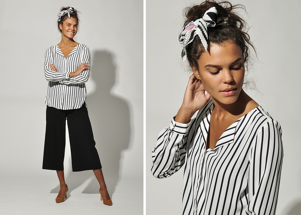 Amanda har på sig en outfit som känns både stilren och säker! Den randiga skjortan är såklart Vilucy i ny färg! Dem här har Amanda redan hunnit norpa. Den blir supersnygg ihop med Objects nya culottebyxa!