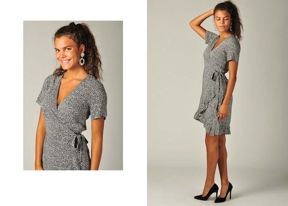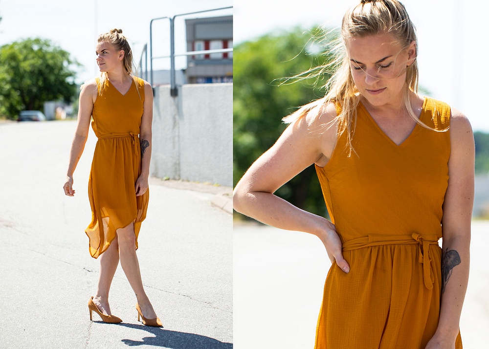 * Amanda har på sig dagens klänning från Minimum, supersöt omlottmodell som känns både sval och skön. Även örhängena kommer idag i både silver och guld.