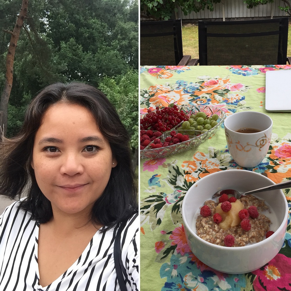 Nu är det dags att ge sig iväg till kontoret. Har jobbat lite nu på morgonen med administration och samtidigt tagit en långfrukost. Frukosten är det bästa målet på hela dagen. Idag blev det havregrynsgröt med äppelmos och trädgårdshallon, och kaffe. Så lugnt och skönt att sitta ute och jobba medan resten av familjen sover. Det enda man hör är lite fågelkvitter. Det kommer så fina plagg idag som ni inte får missa.
