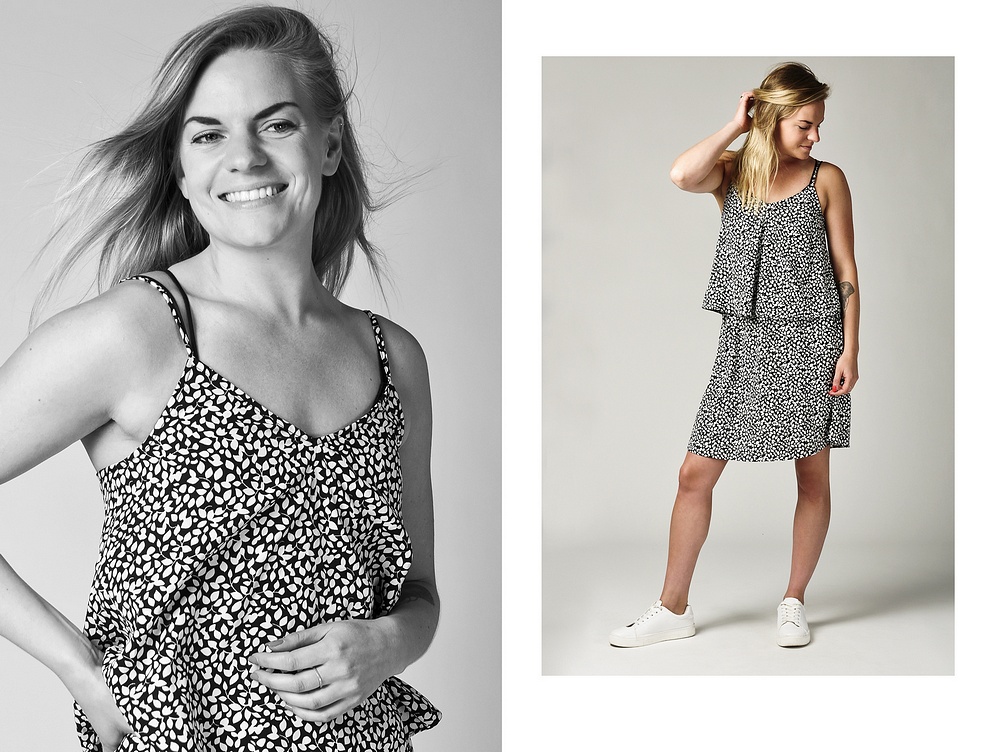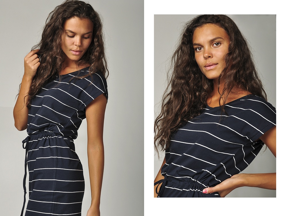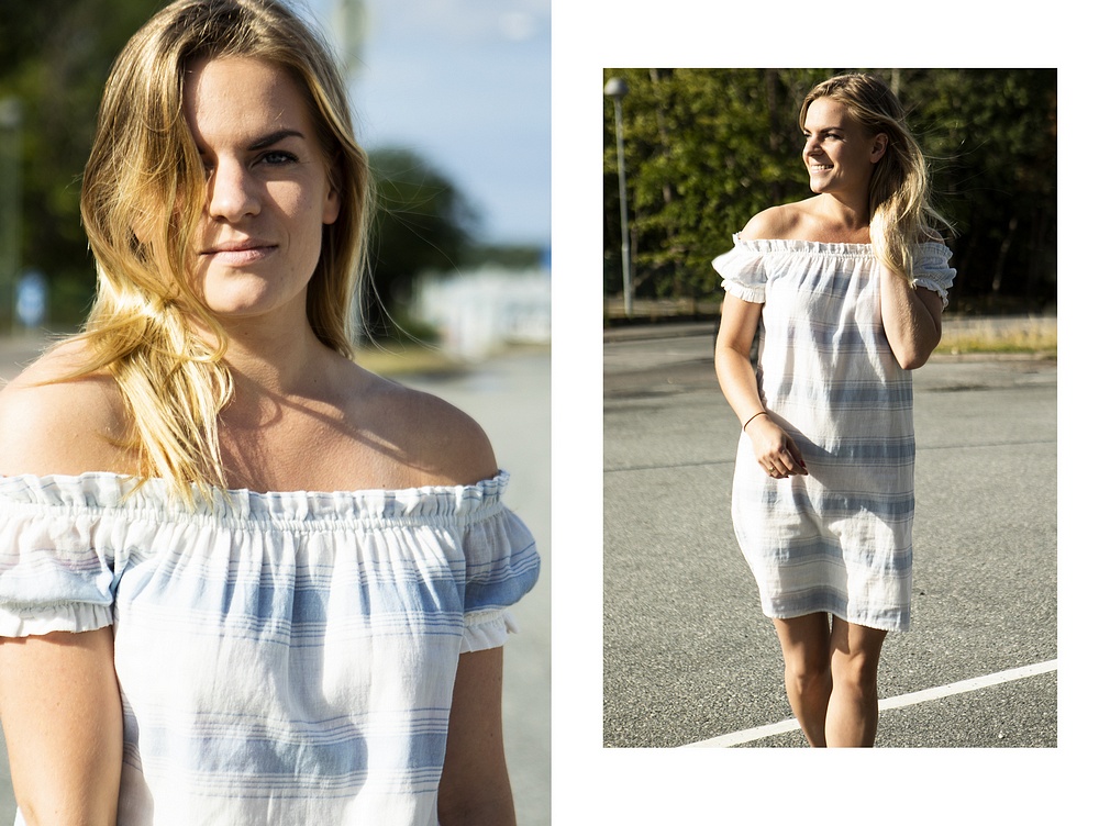 Här ser ni två utav dagens fina klänningar :) Den blårandiga klänningen Jessica har på sig är en riktig sommardröm. Perfekt att ha till stranden eller bara att slänga över bikinin. Om man vill klä upp sig för kvällen är den svarta supersnygg med ett par sneakers eller ett par klackar.