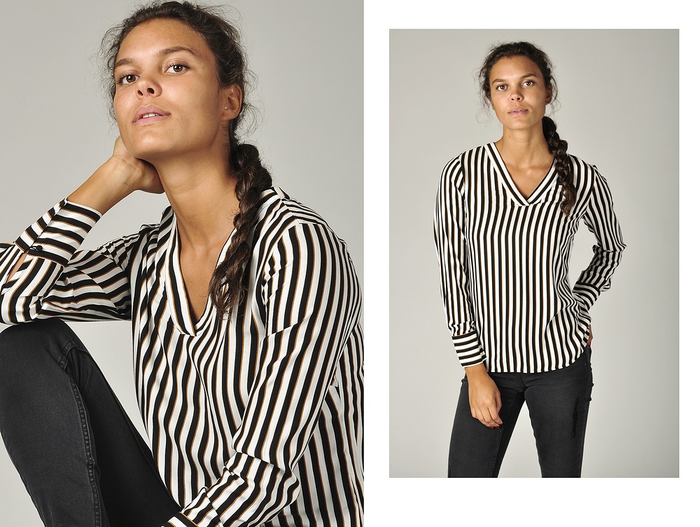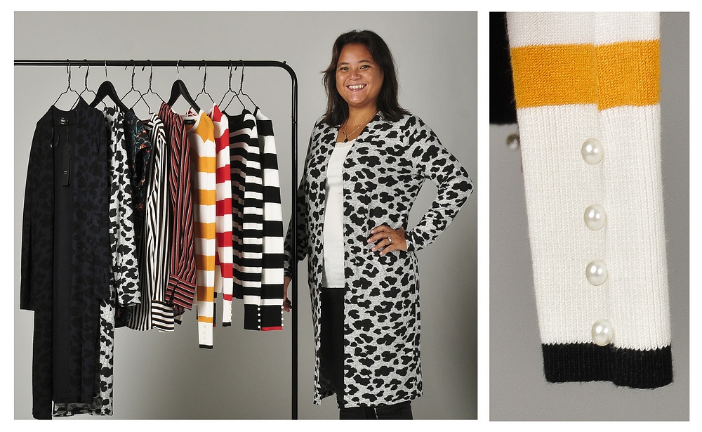 Idag kommer den här härliga cardigan i trendigt leoprint upp som jag har på mig. Den kan jag verkligen rekommendera. Så mjuk och skön på. Det kommer även den fina tröjan i randigt som ni ser med fina detaljer på ärmen. Vi kommer att se mer av dessa pärldetaljer på olika vis framöver, även på blusar. Var med oss kl 11.00