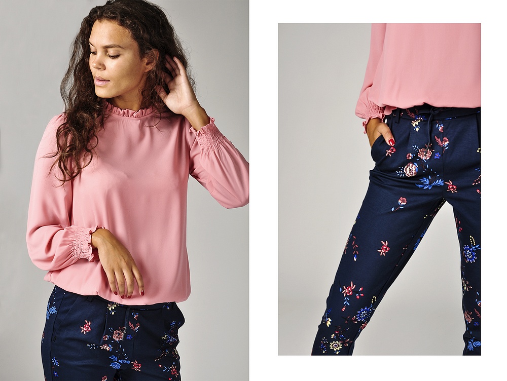 Nu har äntligen de fina blommönstrade poptrash byxorna anlänt. Den fina toppen som Amanda har på bilden kommer även i en fin vinröd nyans. Det kommer även en skjorta från Ichi som Charlotte redan norpat 😉 En snygg stickad tröja till ett kanonpris samt en fin kappa och en skön polotröja.