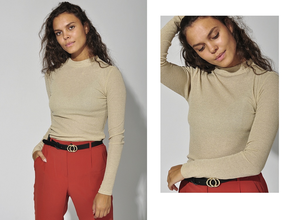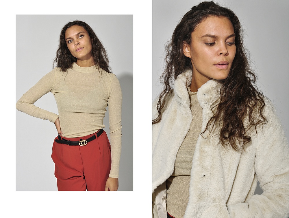 Det kommer även en finstickad tröja i 4 fina färger, ett blommigt linne, en glittrig långärmad topp med volangkant samt ett par riktigt snygga finbyxor i rutigt.