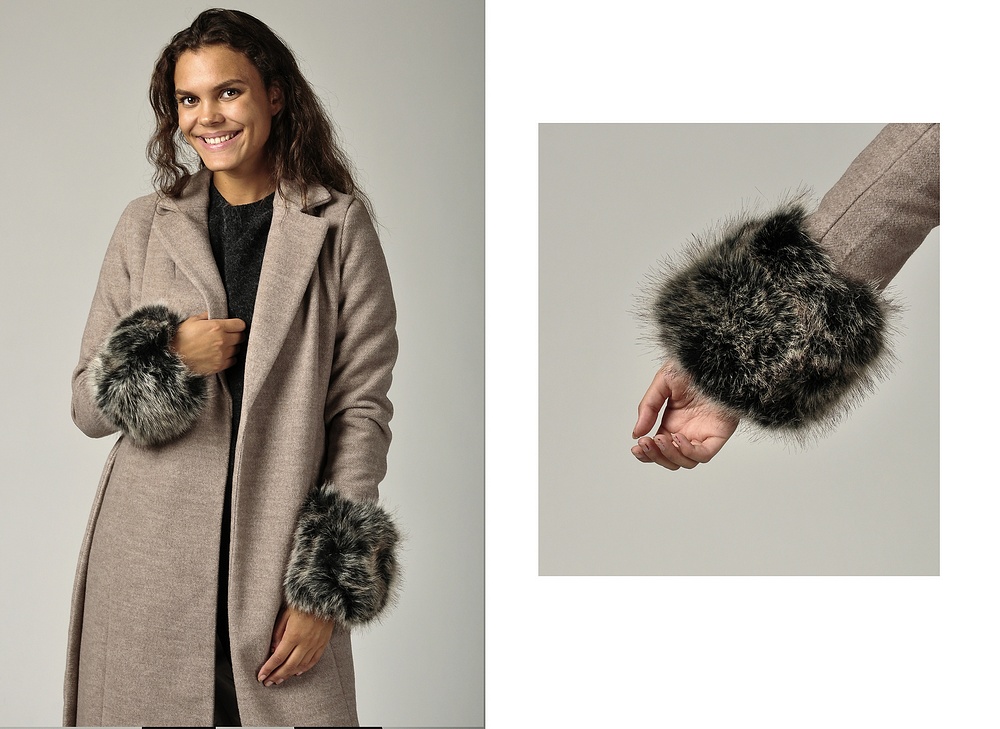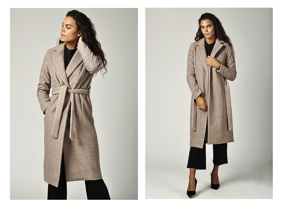 Den här kappan är helt underbar. Den är lite längre och är i fin stilren modell med knyt i midjan. Det kommer även snygga "ärmpuffar" som piffar upp och ger extra värme och snygg look.
