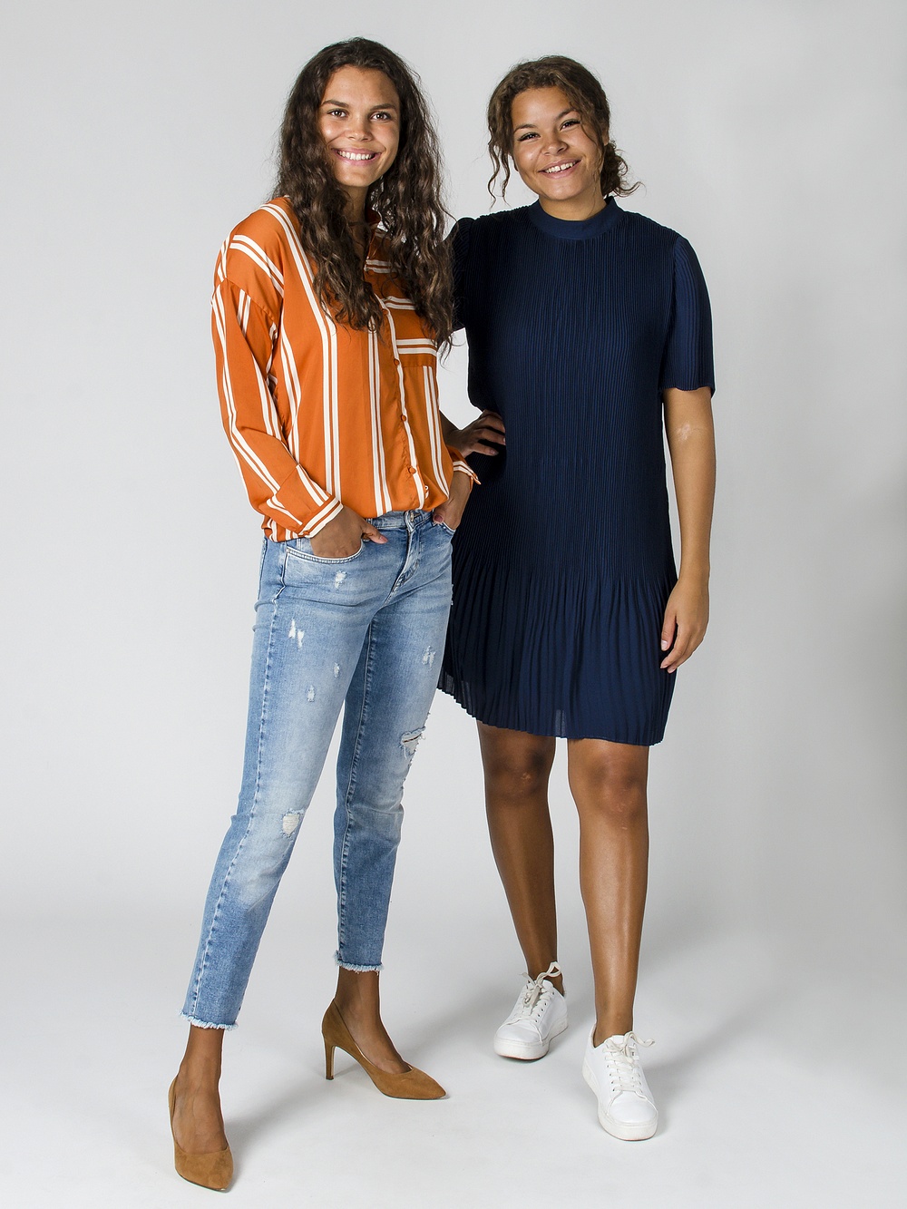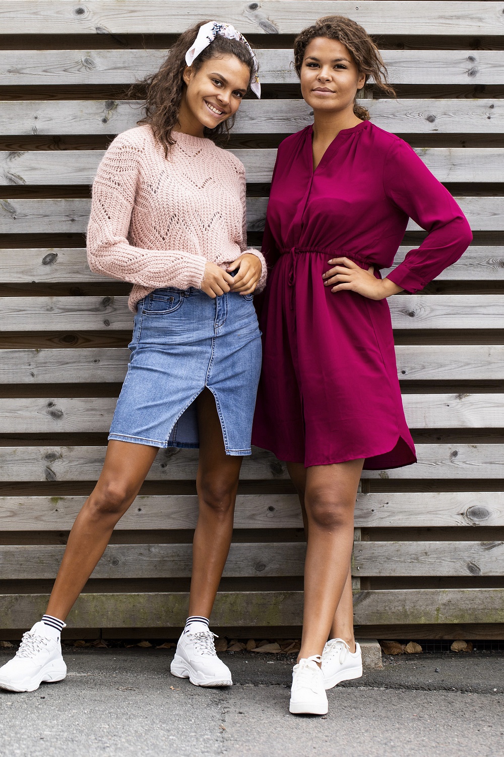 Min syster Kajsa jobbar extra hos oss och fick vara med på fotograferingen. Hon har på sig dagens klänning från Selected Femme. Riktigt söt modell i söt plissering.