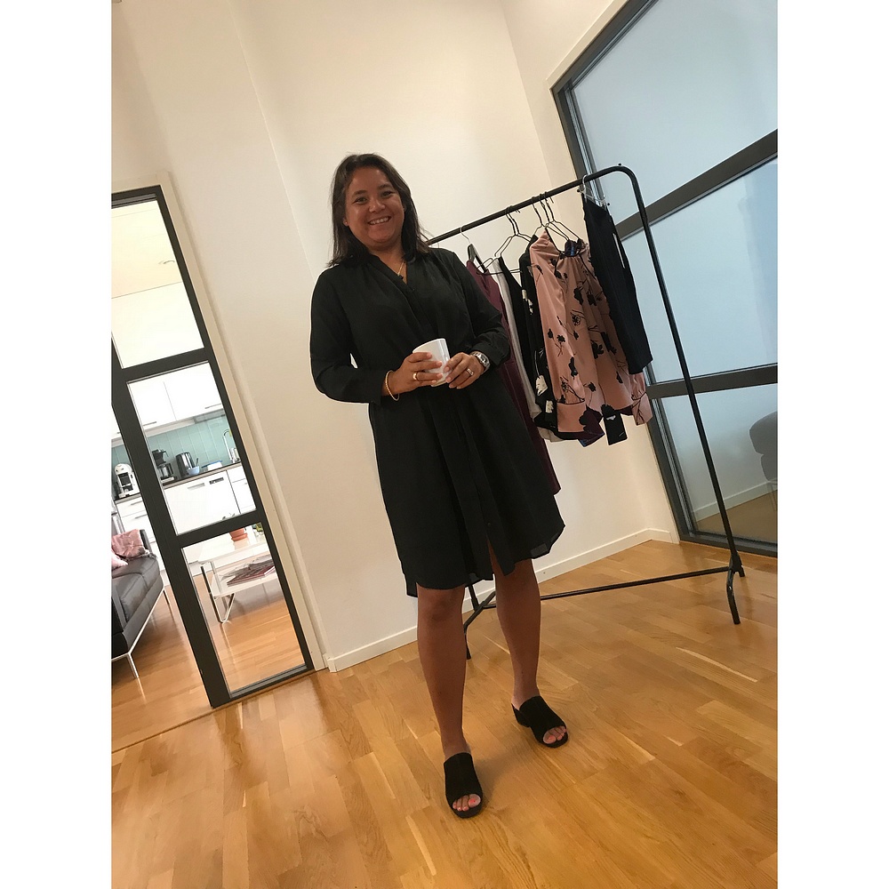 Nu är jag tillbaka från min semester och har laddat med ny energi. Så härligt att vara tillbaka och se alla fina nyheter för hösten som börjar trilla in. Hoppas ni har haft en fin sommar. Idag har jag på mig klänningen Slfdamina som även finns i en rosa nyans. På klädställningen bakom mig så ser ni lite av dagens nyheter.