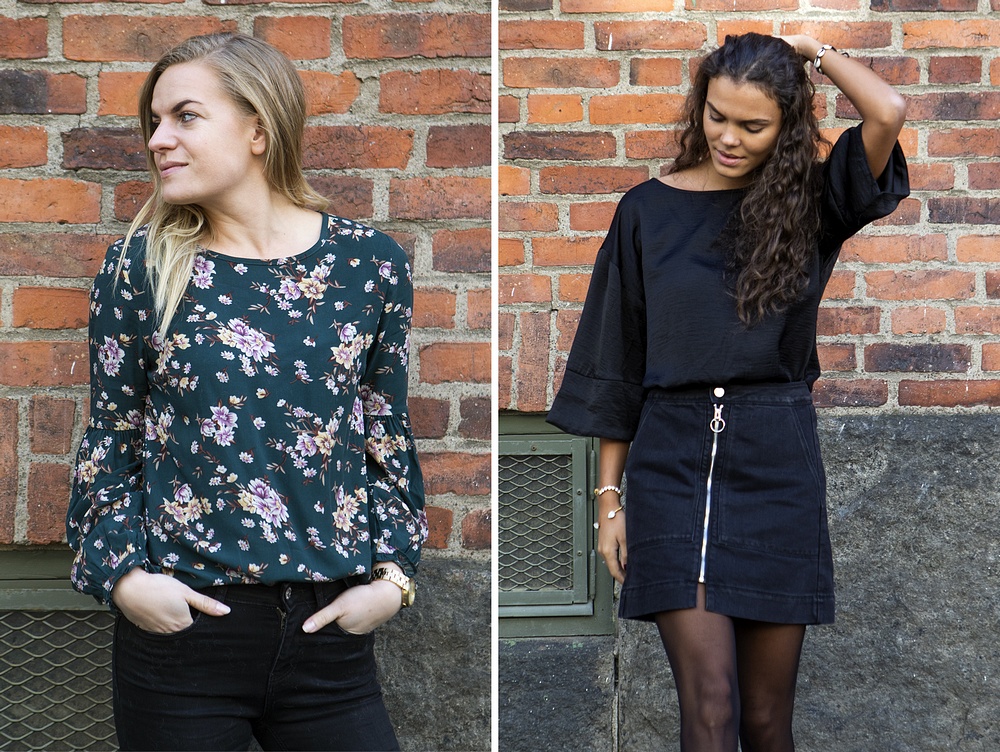 Jessica har på sig den fina blusen från Object i härligt print och Amanda har på sig en fin blus i snygg blank kvalitet. Båda är jättefina att matcha till kjol eller jeans som ni ser på bilden. Amandas blus kommer även i en rostfärgad ton.