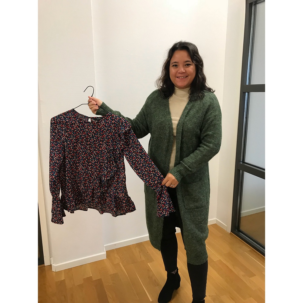Idag kommer den här söta blusen upp. Jag blev sugen på den direkt när den packades upp. Den stickade cardigan jag har på mig kommer också i grått. Så skönt att ha på sig när man är lite frusen. Under har jag toppen Vielja som är snygg att bara ha som den är.