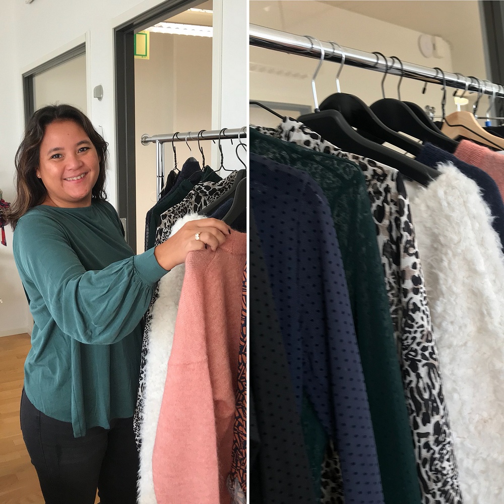 Sitter här och planerar dagens plagg som kommer idag. Den varma tröjan jag har på mig kommer från pieces. Blusen är från Vero Moda´s märke Aware som är inriktat på ett miljömedvetet tänk. Materialet är från återvunna petflaskor. Det kommer även en tillhörande byxa i samma serie men i mörkblått. En super fin blazer och en klänning med fina pärldetaljer.