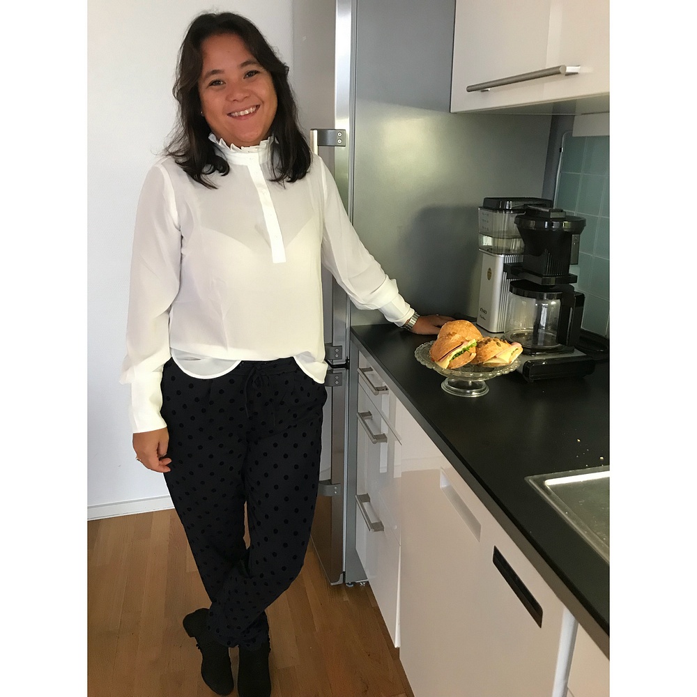 Idag har vi frukostmöte här på jobbet. Vi köper alltid så goda frallor från vårt lokala bageri Lasse-Maja. Jag som älskar Onlpoptrash byxan kunde inte motstå dessa med prickar som kommer idag. Till de har jag matchat med blusen Slflexie.