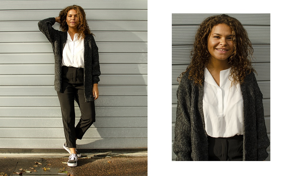 Kajsa har matchat en snygg outfit med Mandelnyheterna för idag!