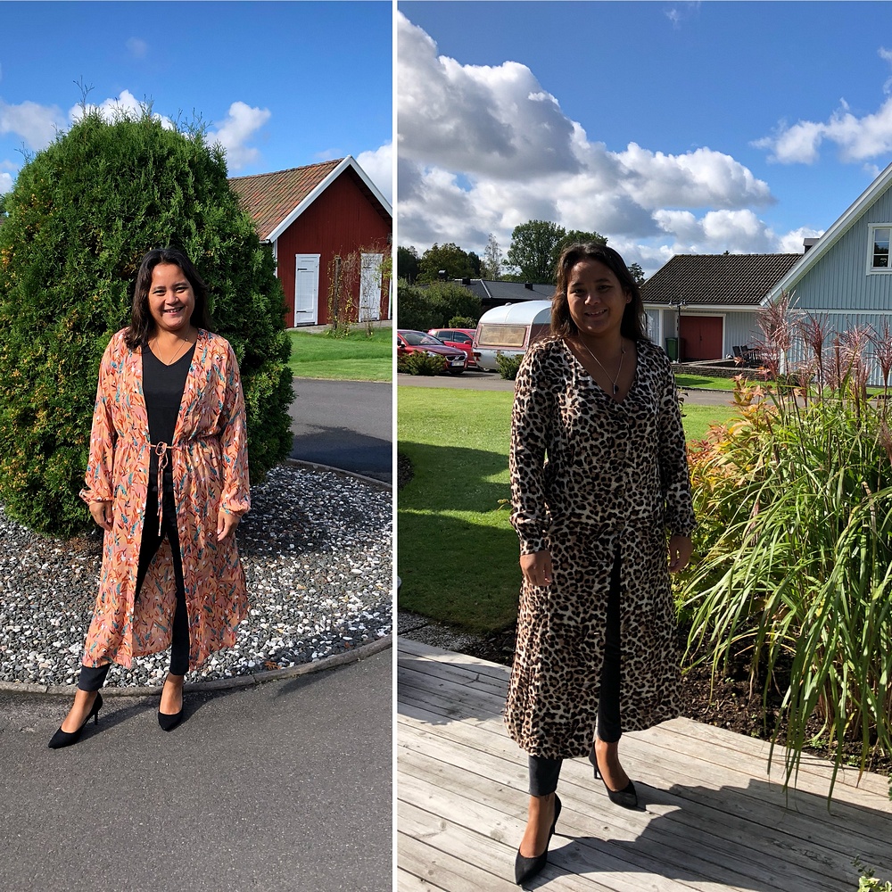 I fredags hann den fina klänningen som jag längtat efter komma så den åkte med. Är dock lite velig vad jag skall ha på mig på festen i kväll. Vad tycker ni? Leopardklänningen eller Kimonon?