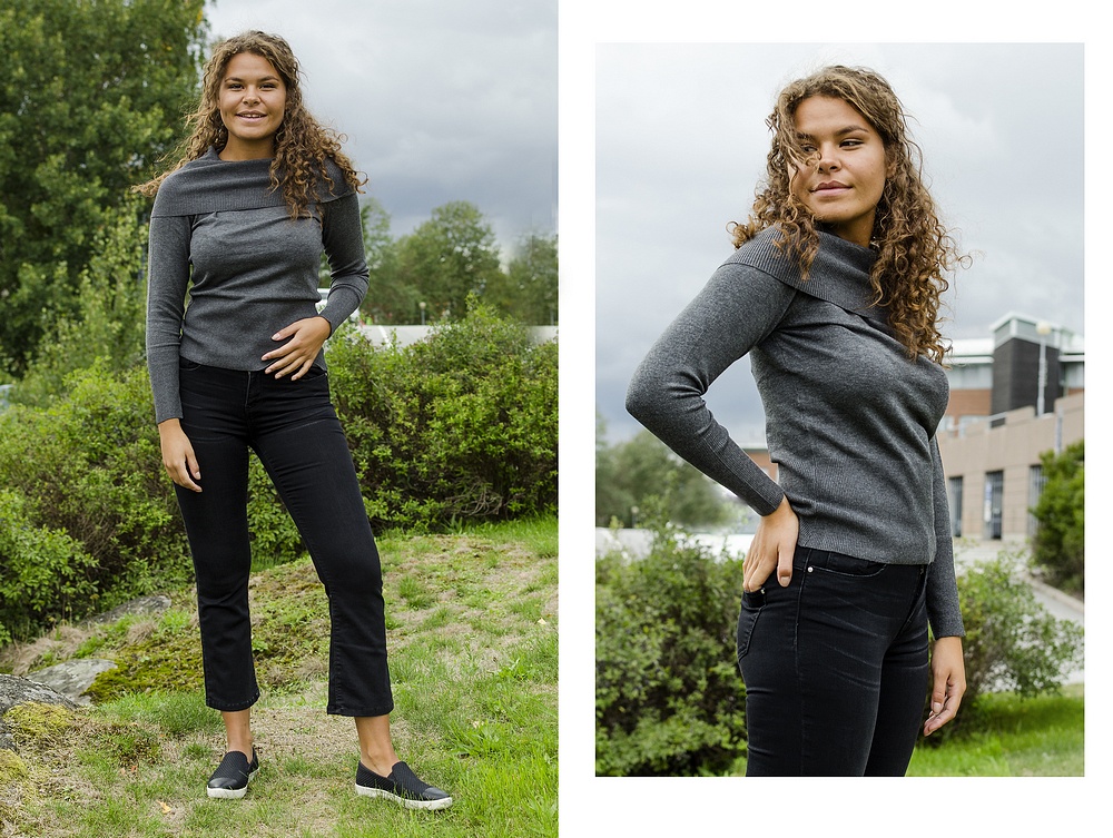 Här får ni se hur det kan bli när blåst och vind inte riktigt vill vara medgörliga med hår och modell😉.