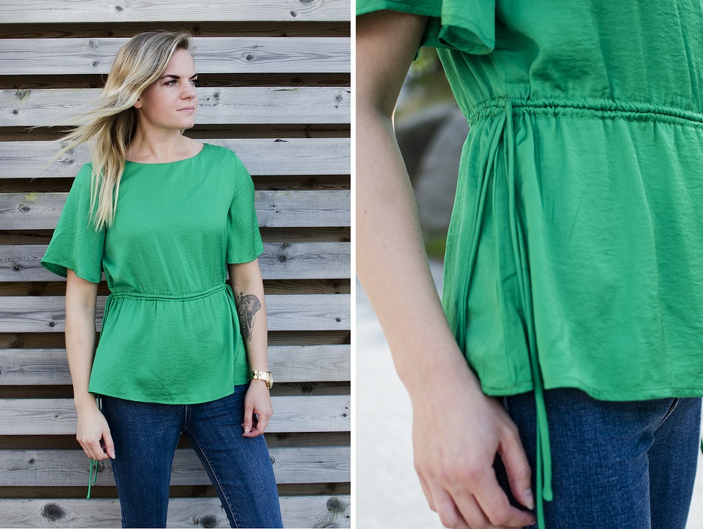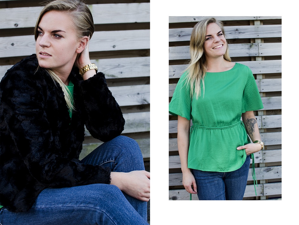Hoppas ni alla har haft en härlig helg. Idag kommer dessa fina plagg upp. Blusen jag har på mig är så fin och kommer från Selected Femme. Fina blusen som ni ser i grönt bakom mig är helt ljuvlig. Dagens kappa från Object är så fin och kommer endast i den fina vinröda nyansen som synes.