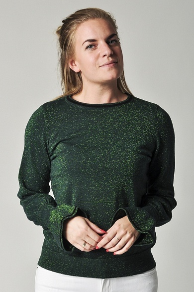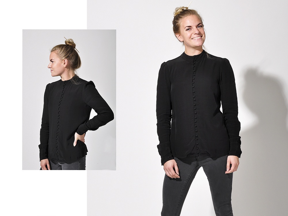 Jessica visar upp den söta blusen från Vero Moda. Supersöta knappar framtill som ger en elegant look.