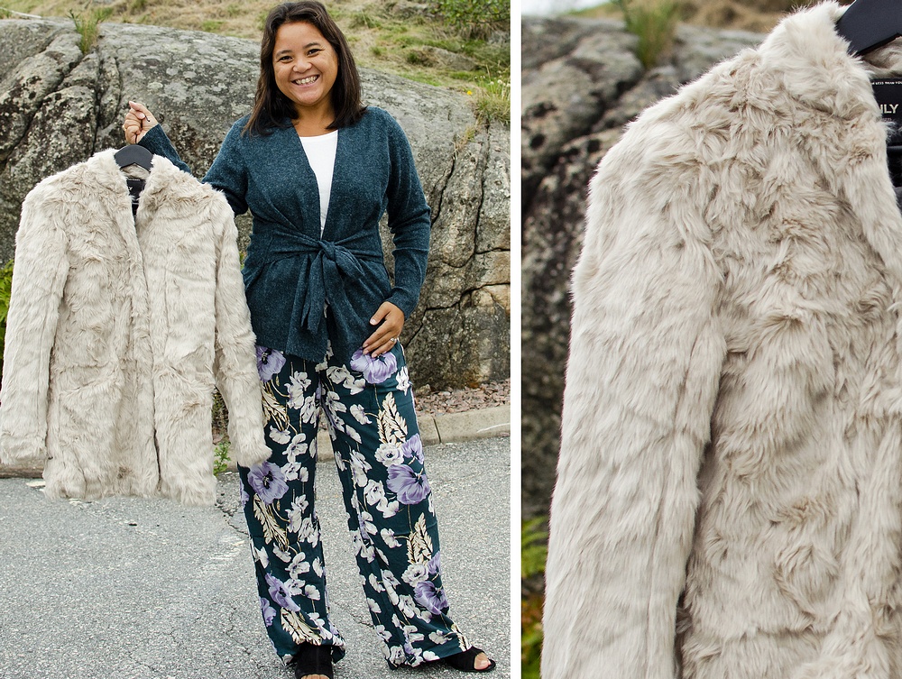 Idag kommer den här fina fuskpäls kappan. Så go och mysig att ha nu i höst. Den kommer även i svart. Koftan jag har på mig är Viarma som kom häromdagen i grått och svart. Så mjuk och härlig. Byxorna kan jag verkligen rekommendera, så fina och sköna.