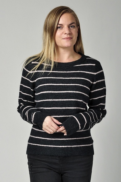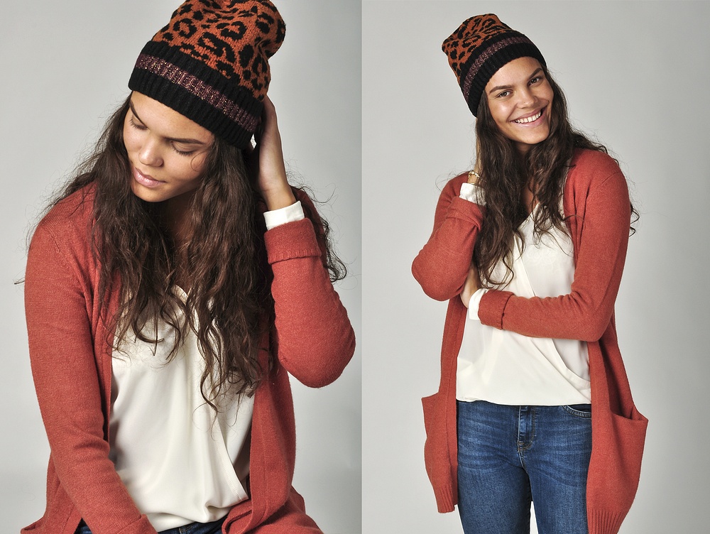 Amanda har på sig den fina blusen från Vila och en ny härlig färg på Viril cardigan.