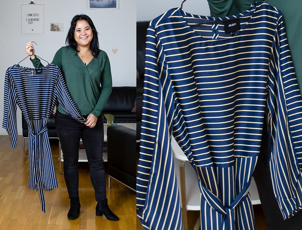 Idag kommer den här fina klänningen från Object. Så fint att ränderna går åt både vertikalt och horisontellt. Jag norpade genast den fina omlott blusen som kommer i dag. Har verkligen förälskat mig i den gröna färgen som är en av höstens färger.