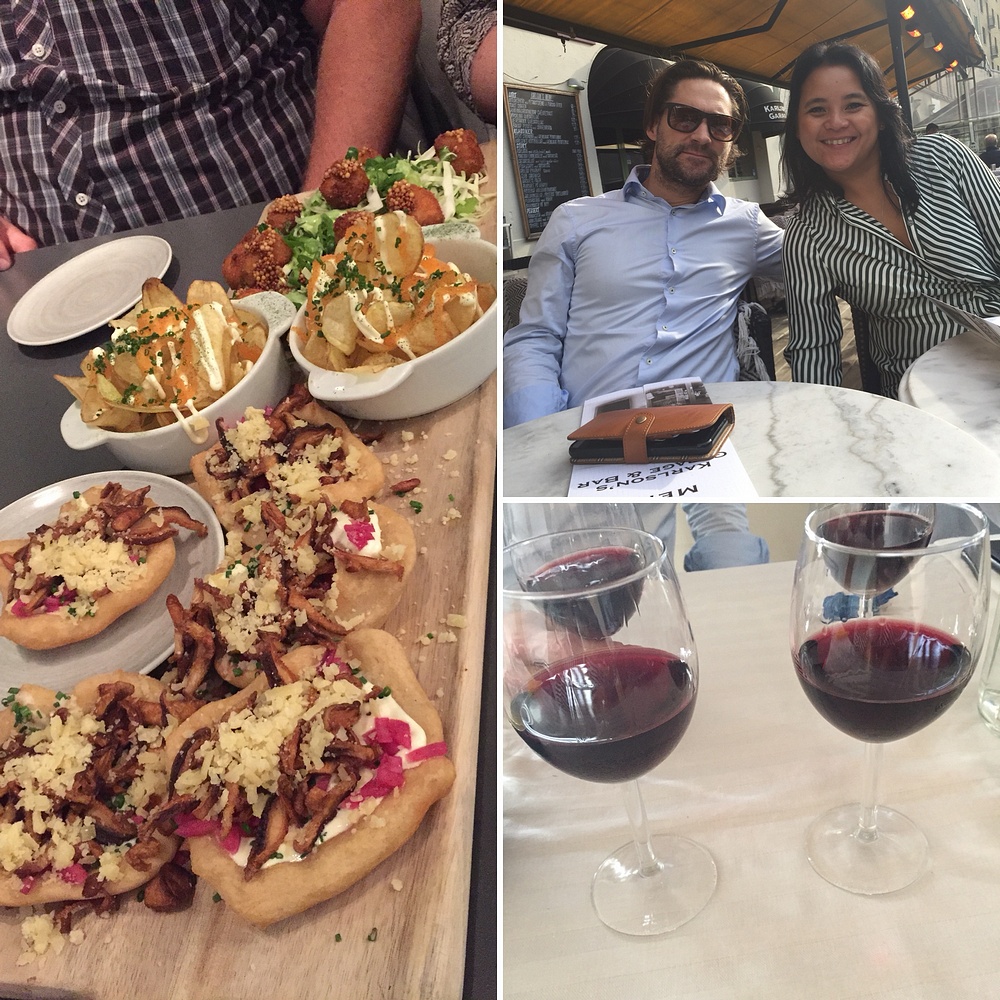 Igår så var jag och min man ute på roligheter. Först så passade vi barnens kusiner och åt lunch på stan. Vi satt faktiskt utomhus, när kunde man göra det i mitten på oktober? Sen gick vi på en vinprovning. Så trevligt att lära sig lite mer av viner. Att ett och samma vin kan smaka så olika beroende på vad man äter till :)