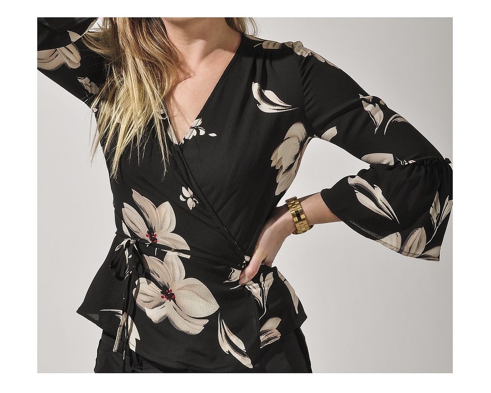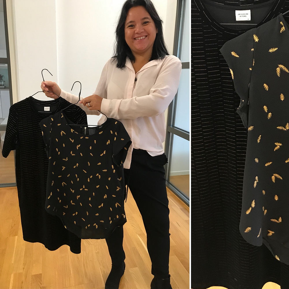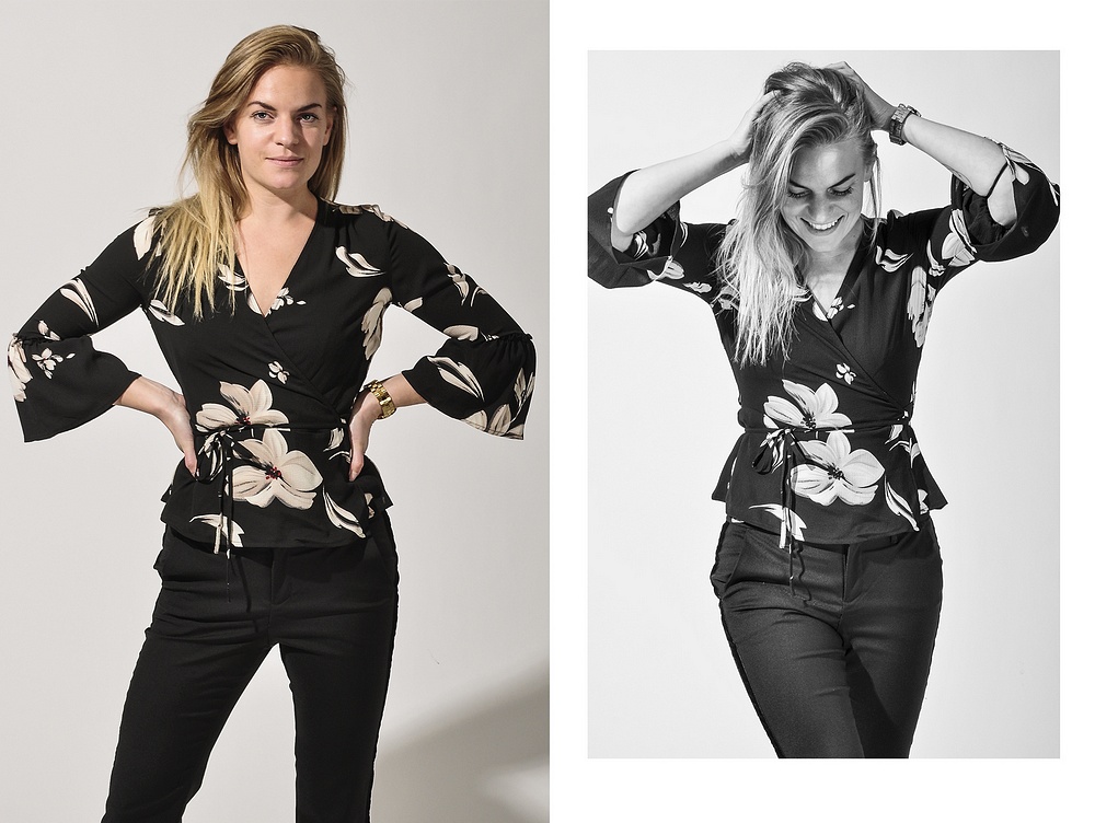 Jessica har på sig en festlig omlottblus från Onlnova Lux-serien! Passar riktigt fint ihop med både dressat och jeans.