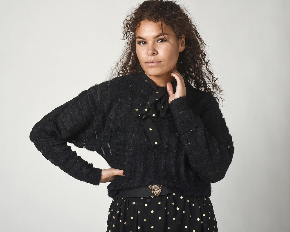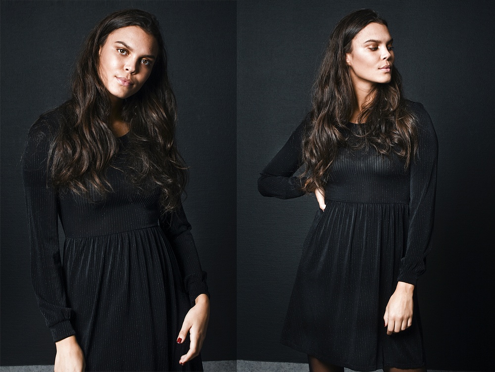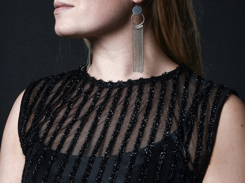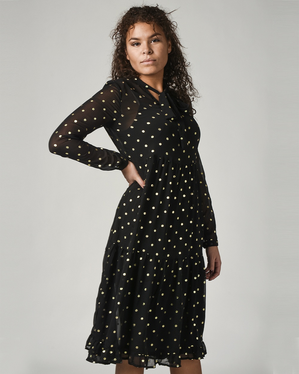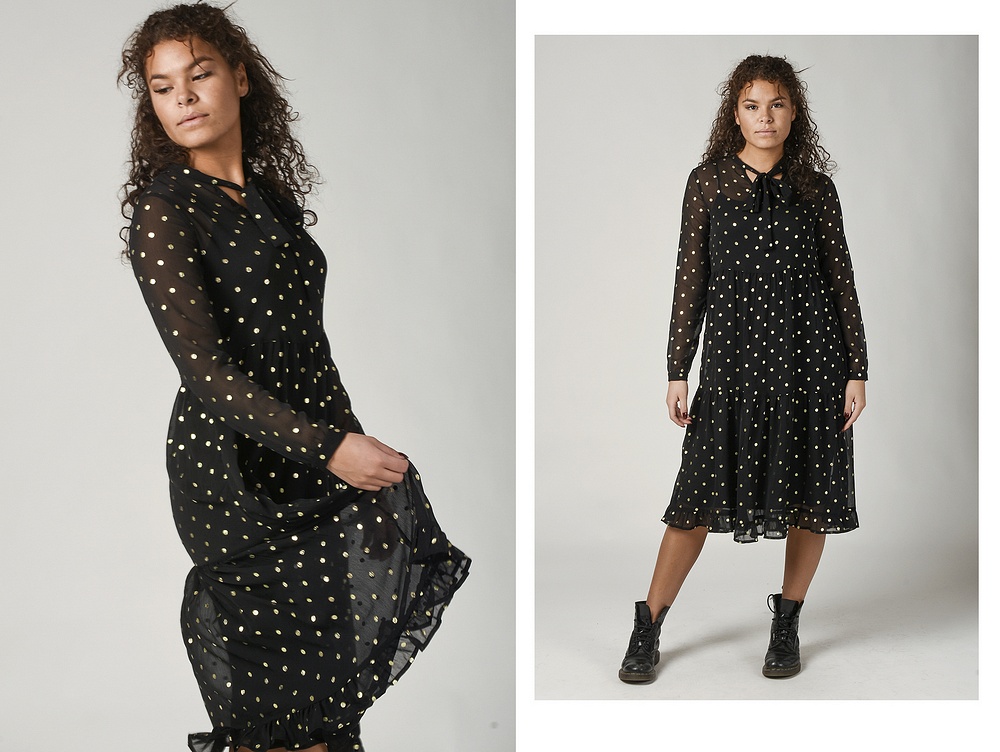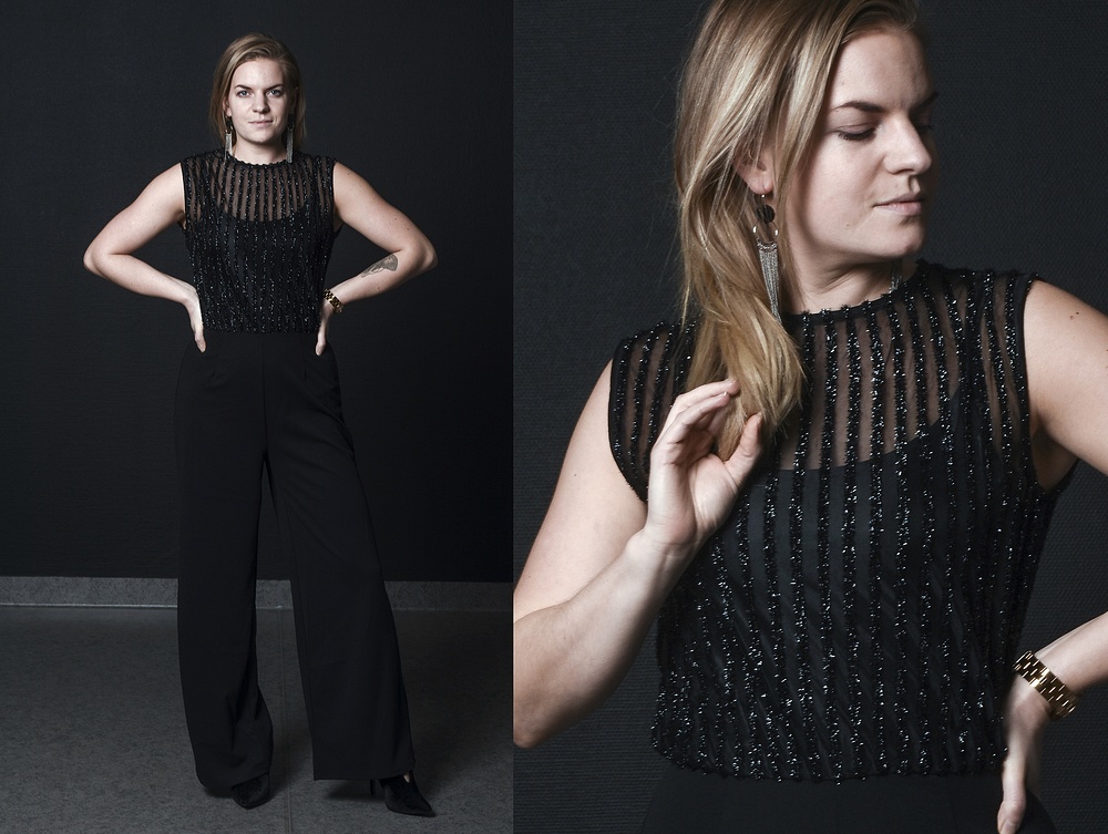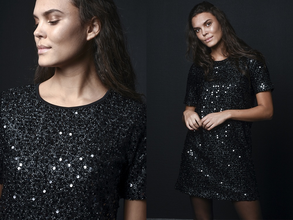 Ni ser Amanda i en diskret glittrig klänning. Som passar både till vardags och fest.