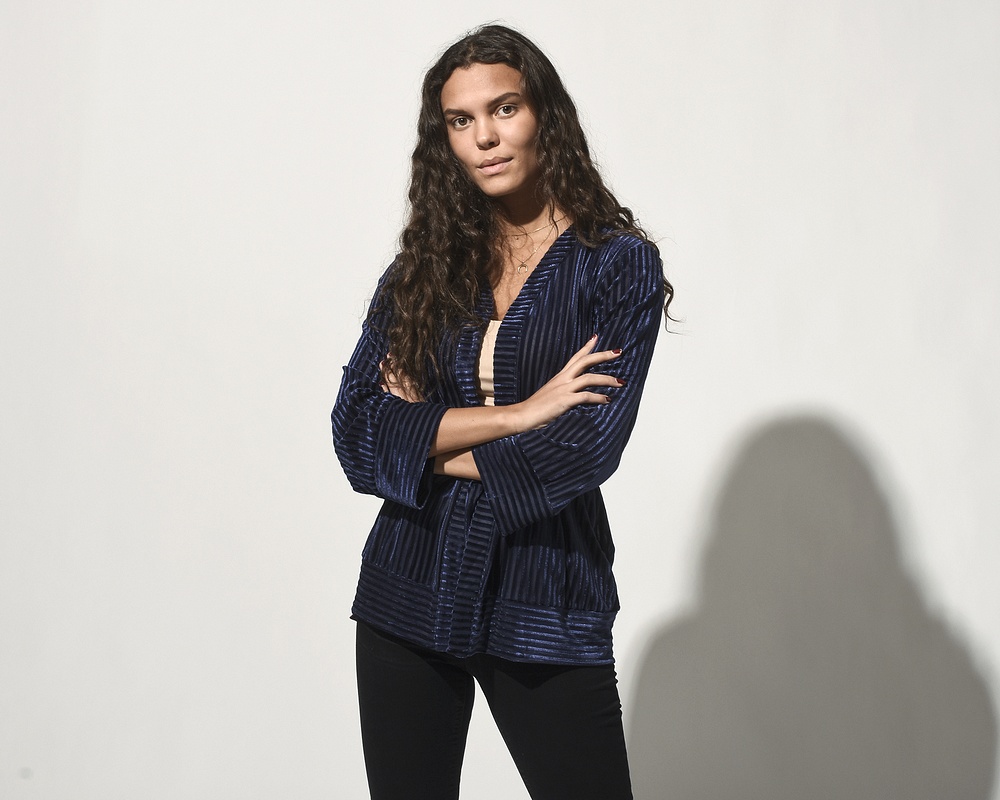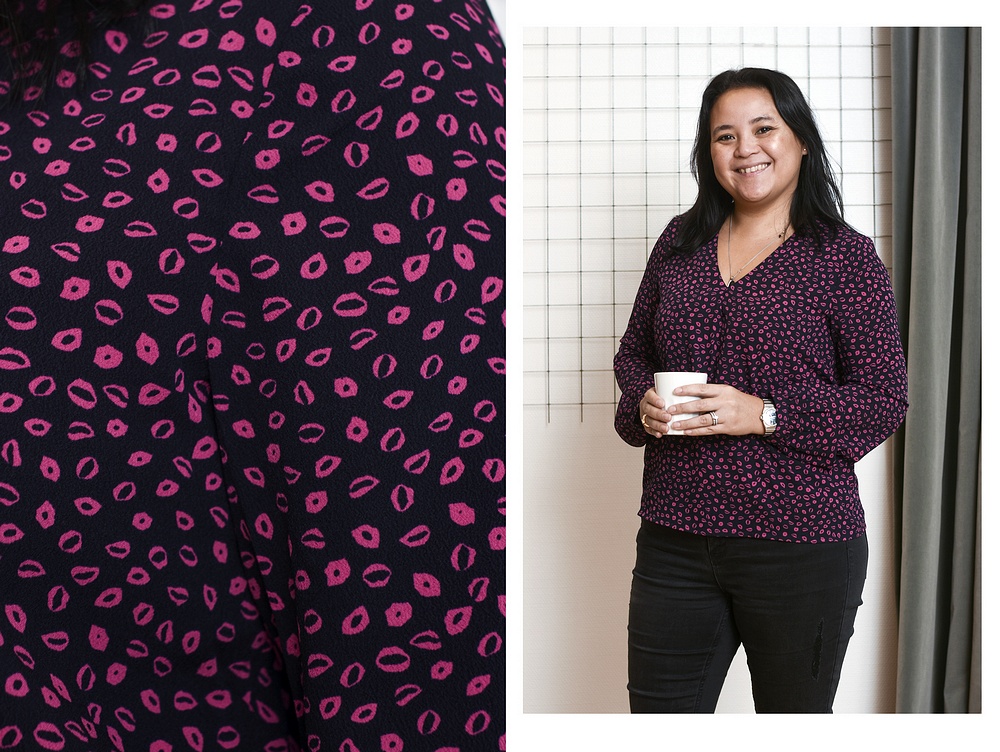 Byxorna matchas med ett enkelt och oerhört bekvämt linne samt en mysig cardigan. Cardiganen som Kajsa bär kommer i tre härliga färger.
