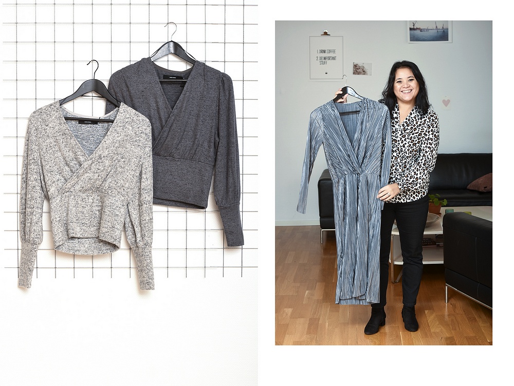 Idag kommer dessa fina plagg. Omlott tröjan till vänster är så mjuk och skön i kvaliteten. Den snygga festliga klänningen från Vila kommer även i svart.