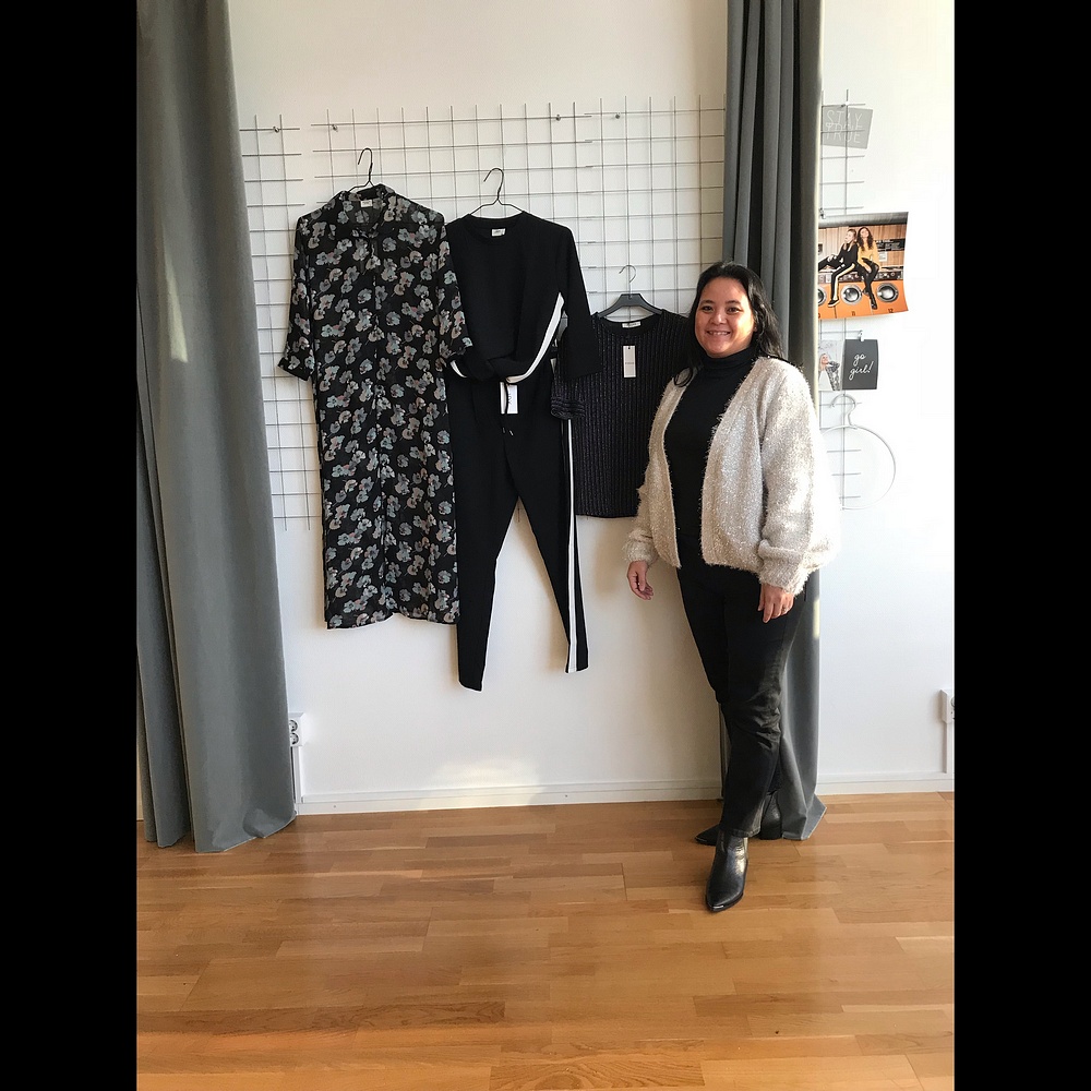 Jag har på mig fina blusen Vikamia som vi även har inne som skjortklänning och gick som smör här. Det kommer även en fin klänning i spets samt en skön stickad tröja.