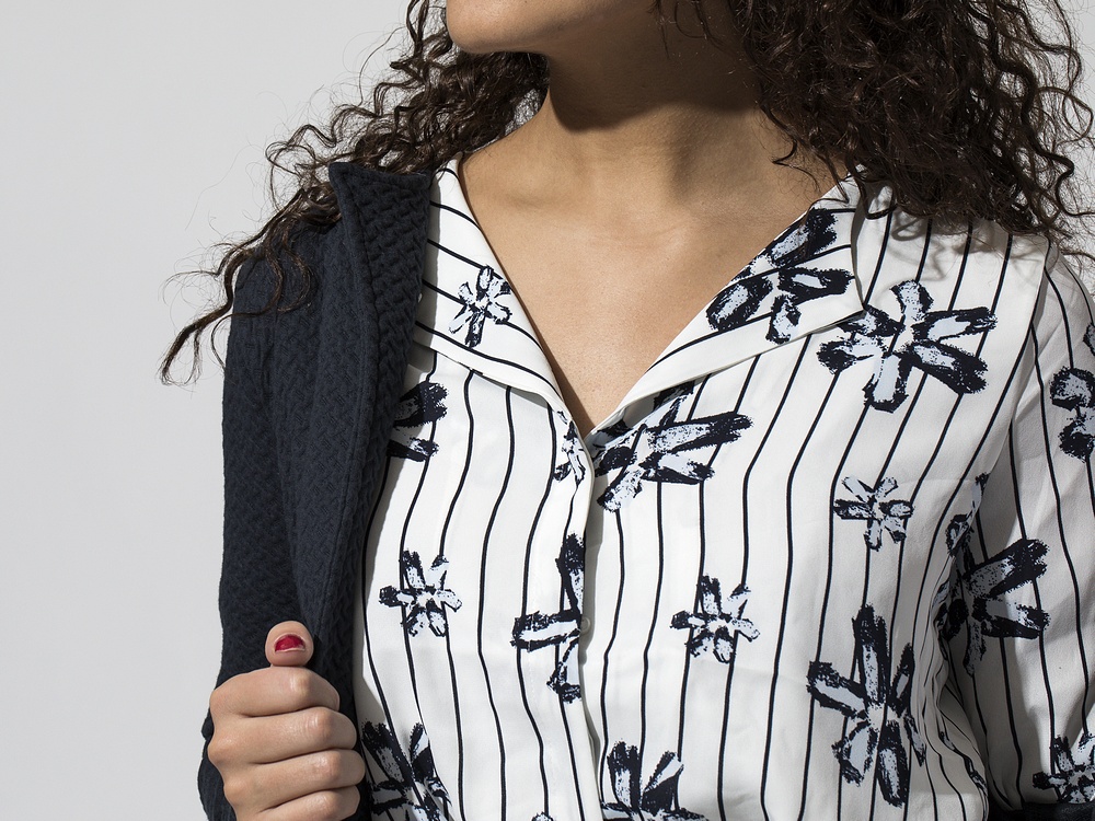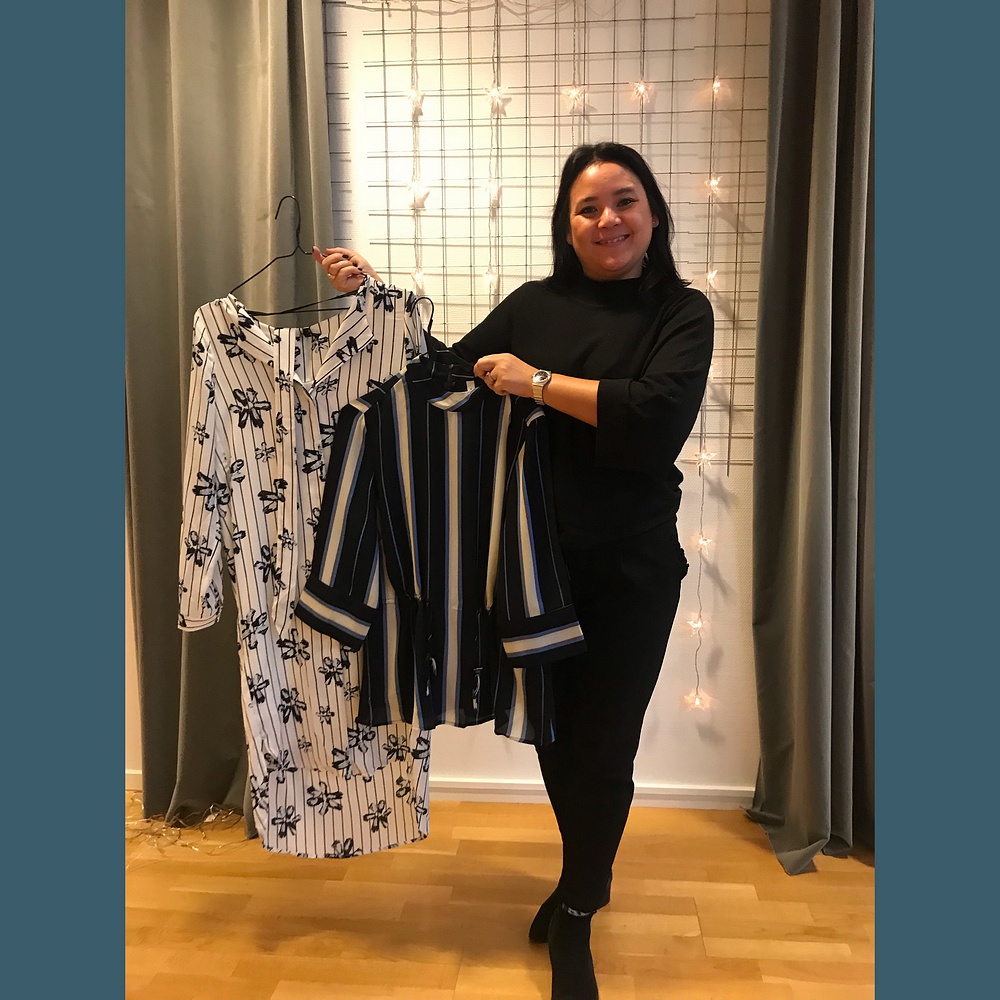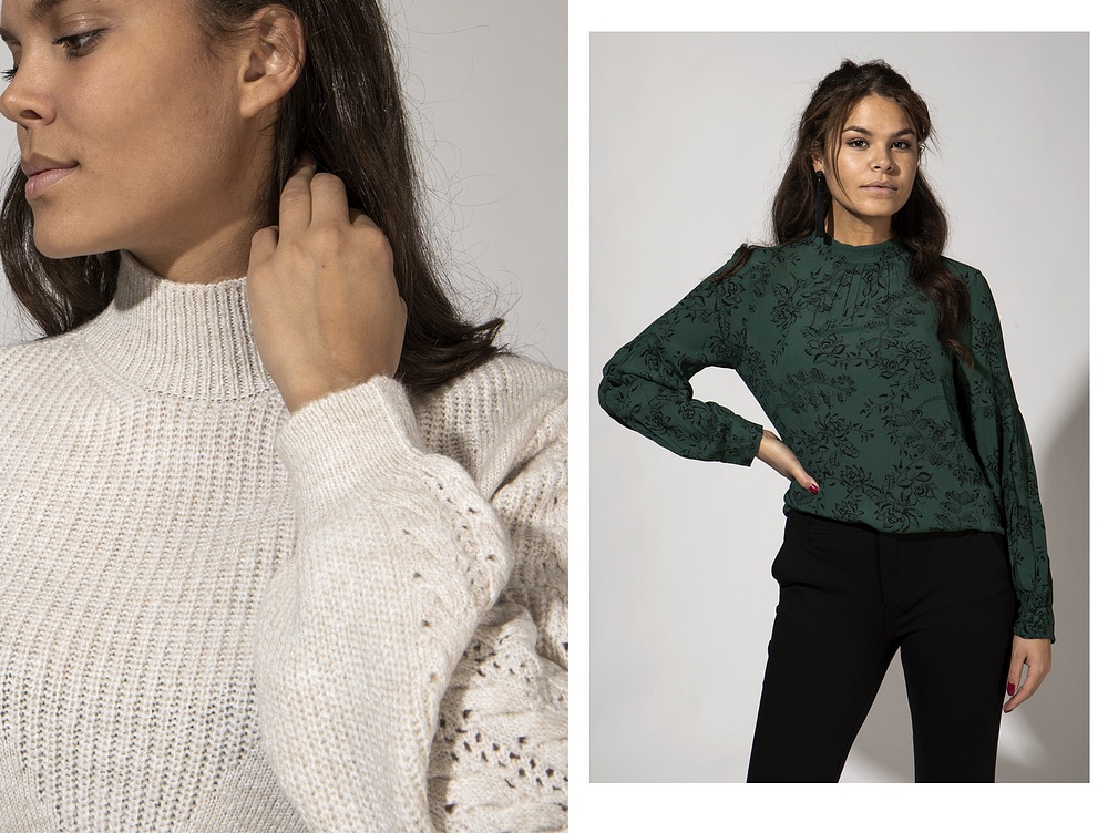 Kajsa bär dagens fina blus ifrån Vila. Den har en så fin grön färg med ett härligt mönster, som gör att den både kan bäras till vardags men även till fest. Blusen har hon matchat med Soyas cardigan som hamnar i webbshoppen idag också.
