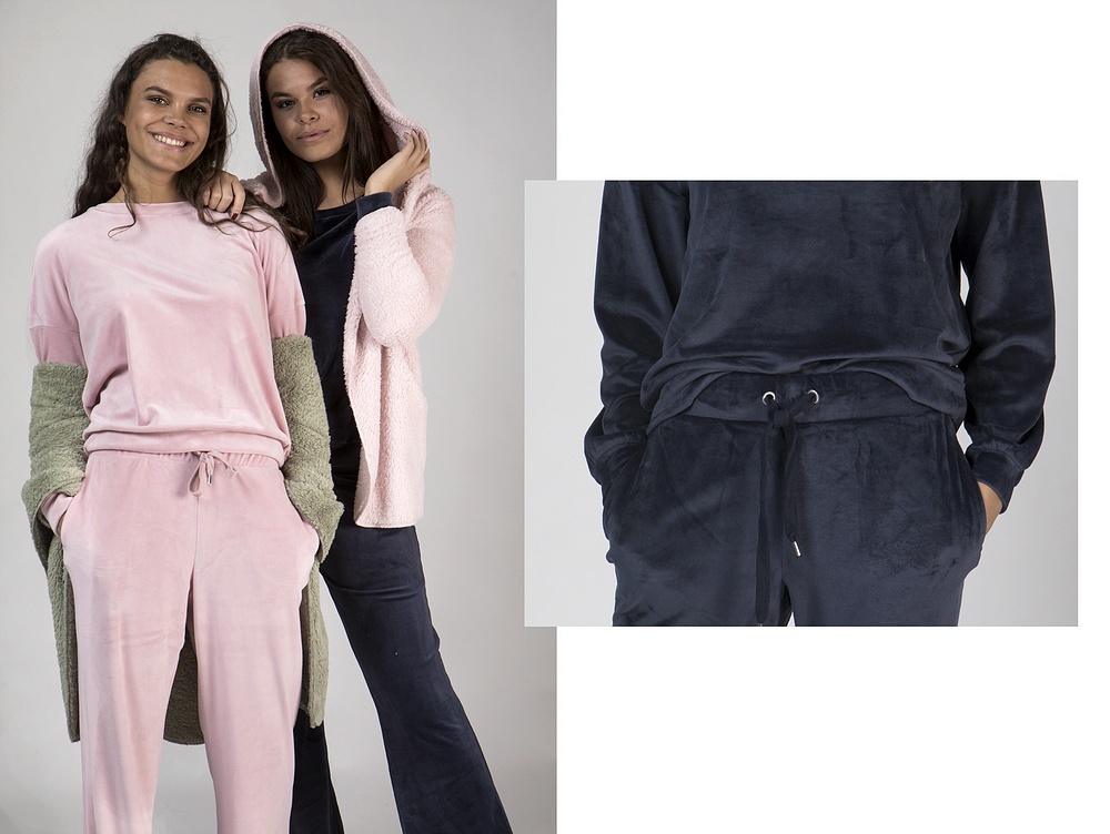 Idag kommer dessa velour-set som ni ser på Amanda och Kajsa. Dom är så härliga och mysiga att man nästan vill bo i dom. Byxorna är lite vidare och har lite mer längd vilket gör dom väldigt sköna.