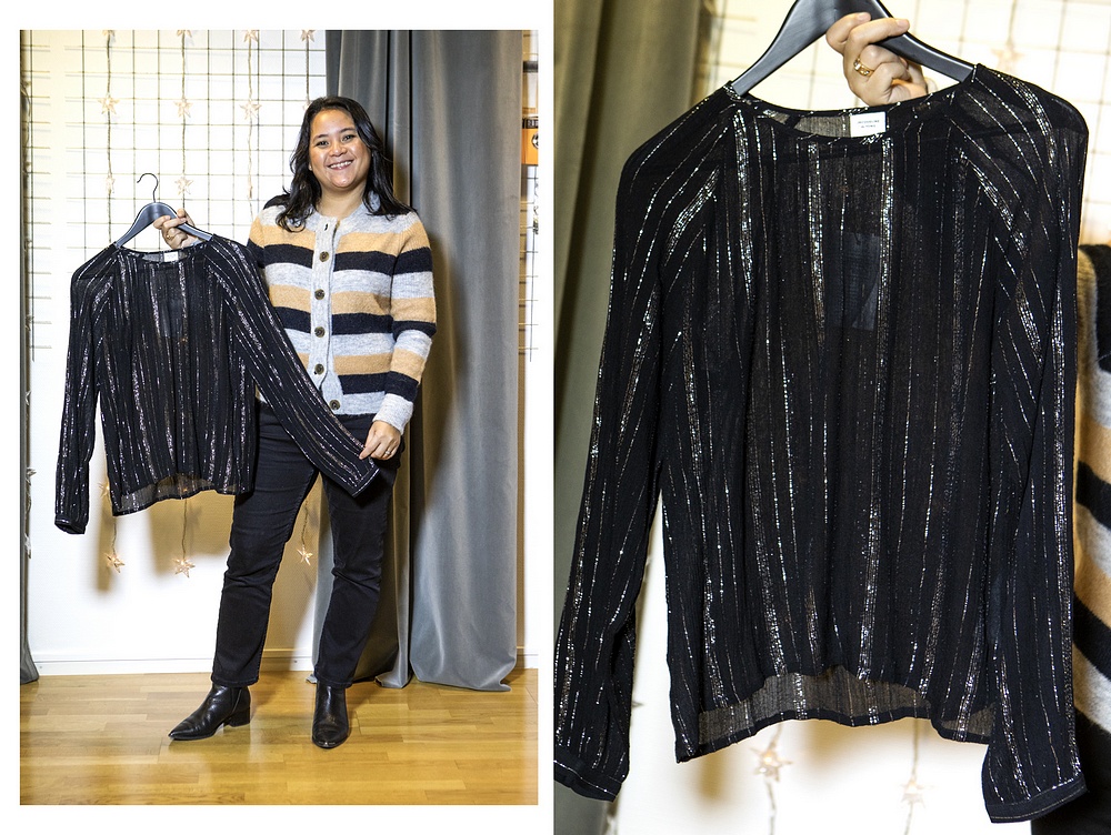 Det kommer även ett par svarta jeans, en jultröja samt en glittertopp i vid härlig modell.