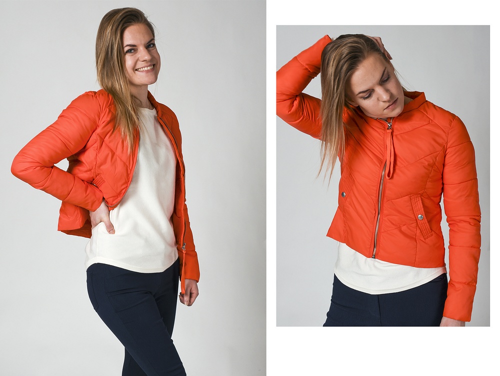 Den härliga lättviktsjackan i två härliga färger som ni ser här och blusen jag har på mig kan jag verkligen rekommendera. Kommer endast som synes.