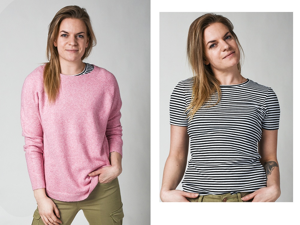 Här ser ni Kajsa i dagens nya byxor som även kommer i ljusrosa.