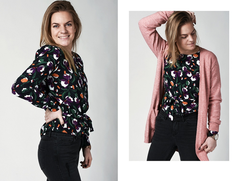 Jessica har även hon på sig fina blusen som Charlotte hade tidigare. Den är helt ljuvlig tycker vi! Över har hon tillsammans med Kajsa på sig nya färgerna på Viril-cardigan.