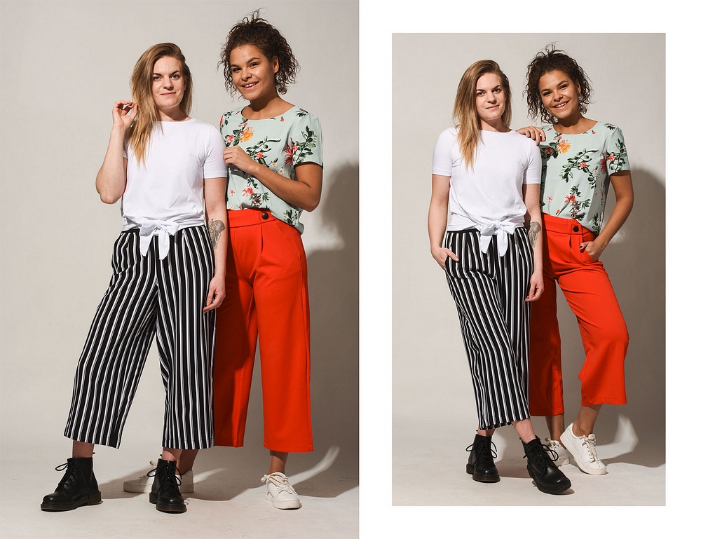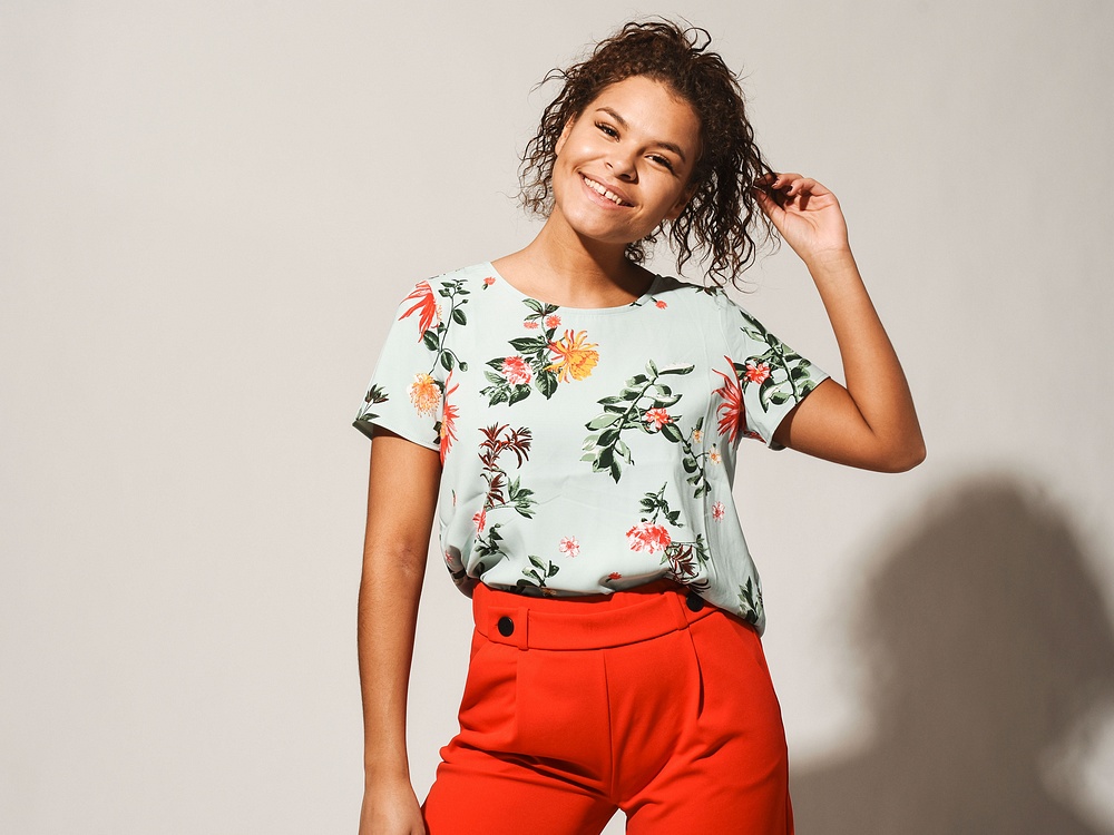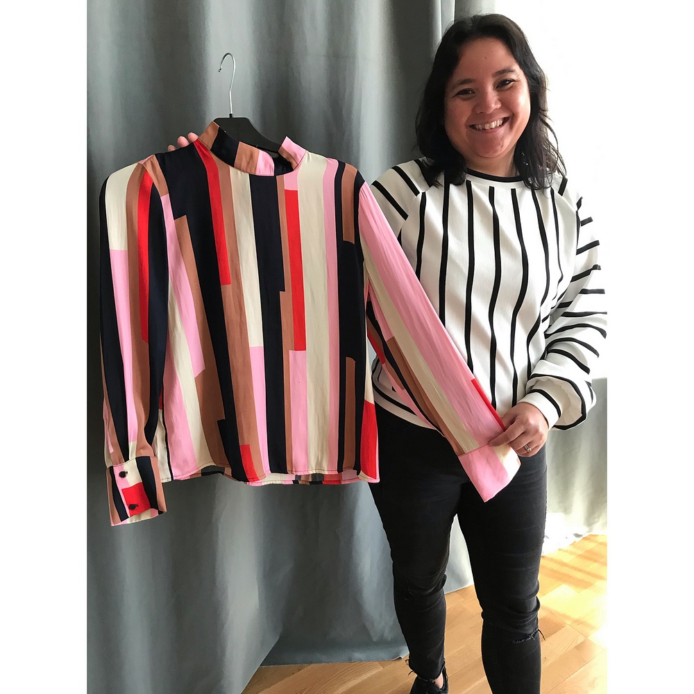 Kajsas topp är Vilaia som här kommer i sommarens fräscha mönster och som vi redan har inne i lite andra modeller. Dessa färger i toppen gör sig så bra med våra nya Jdygeggo!