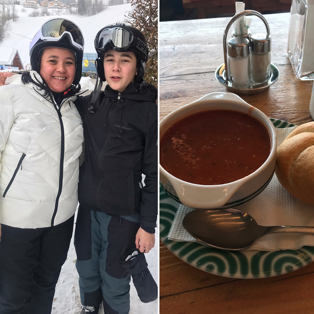 Här kommer en liten hälsning från ett snöigt Österrike. Vi åker skidor hela dagarna och till lunch blir det gulash soppa. Det har snöat väldigt mycket här men imorgon lovas det sol enligt väderappen :)