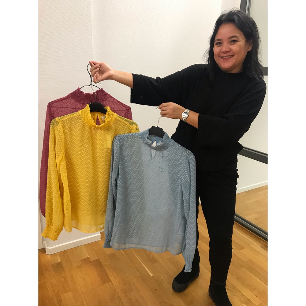 Kajsa har på sig superfina blusen som kommer i 5 färger (några såg ni i tidigare inlägg).