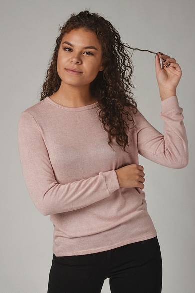 Jessica har på sig svala och härliga kortärmade toppen onlfirst som kommer i färgen till synes och i rosa. Den här är verkligen så mjuk och fin i kvalitén och ser lite mer dressad ut än en vanlig t-shirt.