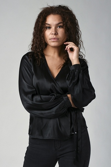 Den fina blusen som Kajsa är så fin med sin ballongärm och blanka kvalitet.