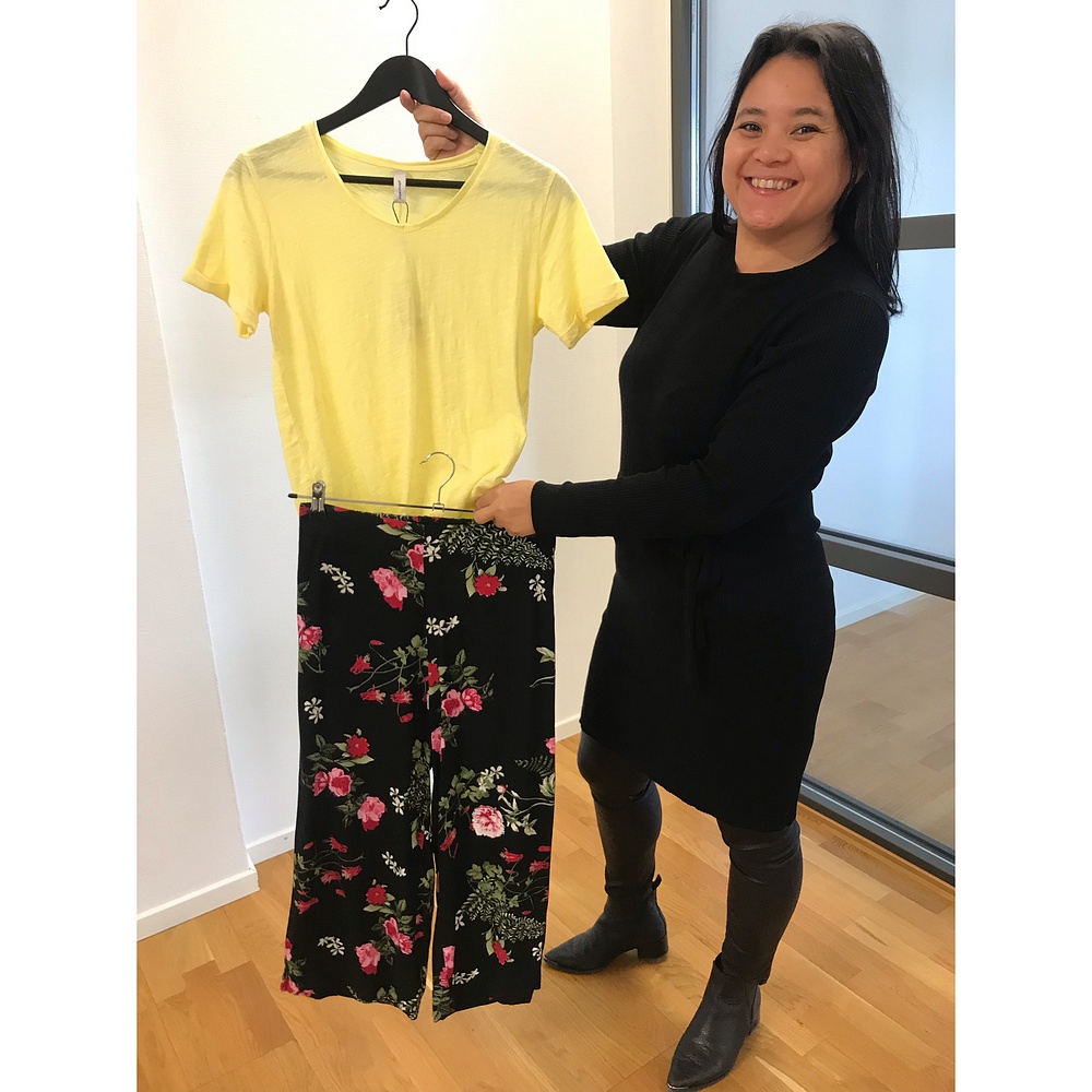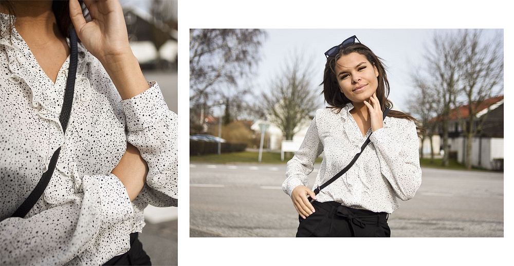 Till toppen har hon fina byxorna med knyt: