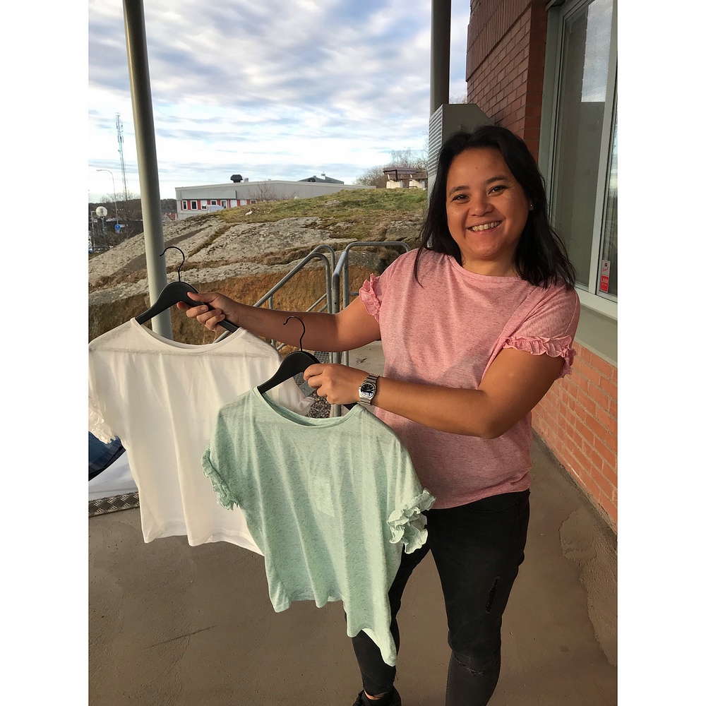 Idag kommer den supersöta t-shirten med volang. Tycker det är så härliga färger, har svårt att bestämma mig för vilken färg jag skall köpa, men det kanske blir alla tre 😉